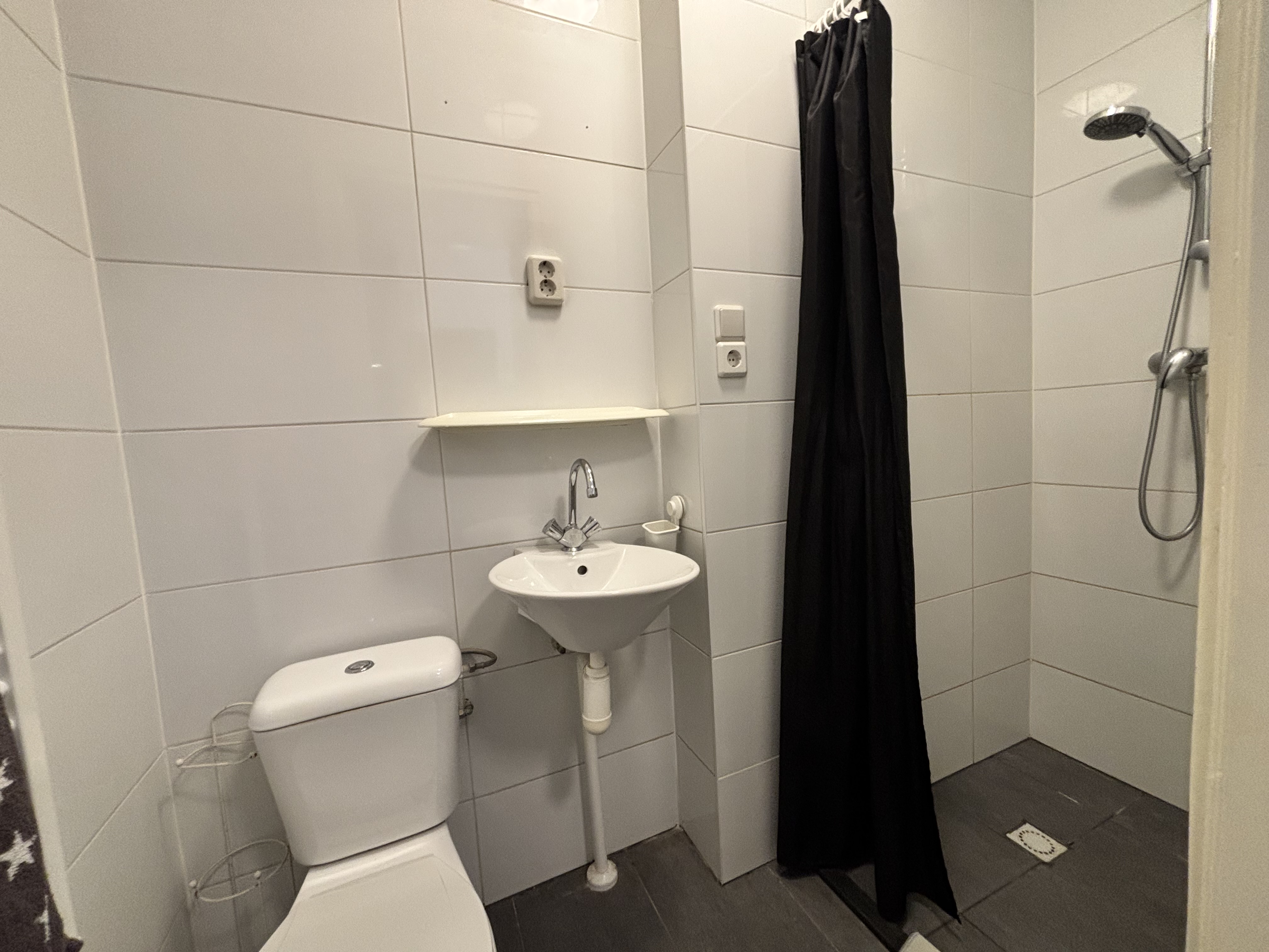 12 m². Badkamer welke is voorzien van een douche, toilet en wastafel. De gehele woning is voorzien van een laminaatvloer, dubbele beglazing en wordt verwarmd middels centrale verwarming. De aansluiting voor de wasmachine/ droger bevindt zich in de keuken.