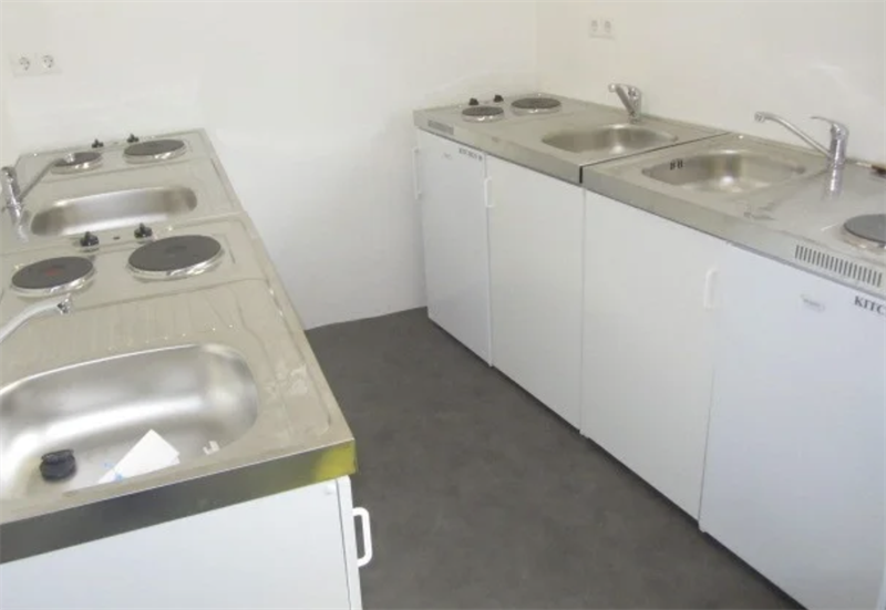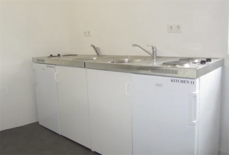2e verdieping Gezamenlijke keukenruimte: Afzonderlijke ruimte waar elke huurder de beschikking heeft over een eigen kitchenette met koelkast en 2 pits elektrische kookplaat en serviesgoed. Geheel gemeubileerde studio Minimale huurperiode 6 maanden Geen huursubsidie mogelijk Geen huisdieren toegestaan -1 persoon maximaal.