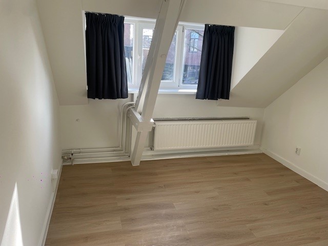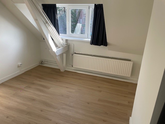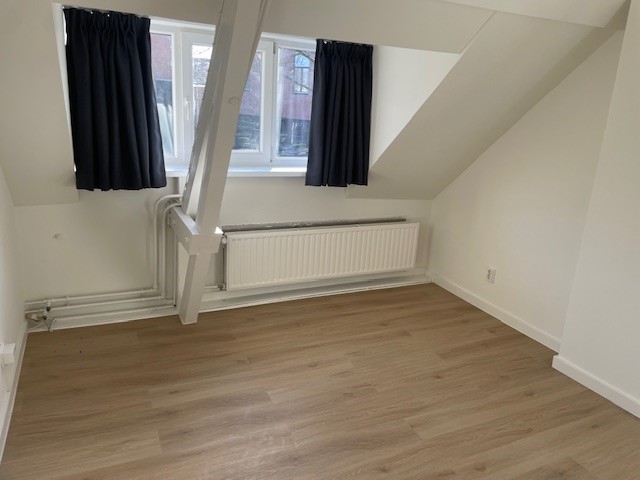 Buiten: Tevens grote tuin aanwezig ( 20 ) en berging. De tuin is bereikbaar met een eigen achterom. Fietsen kunnen dus veilig in de tuin geparkeerd worden. Eerste verdieping: De kamer is gelegen op de eerste verdieping en is voorzien van neiuwe vloerfawerking, kunststof kozijnen met dubbelgals, nieuwe schilderwerk en neiuwe gordijnen.