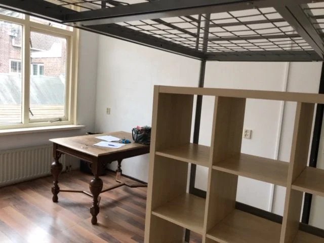 De kamer is circa 16m2 met een hoogslaper erin, een inbouwkast, eigen wastafel en de keuken en badkamer wordt gedeeld. Het is een zeer lichte kamer door de aanwezigheid van grote ramen. Er is tevens toegang tot een dakterras. De locatie is zeer gewild, aangezien heel veel op loopafstand is.
