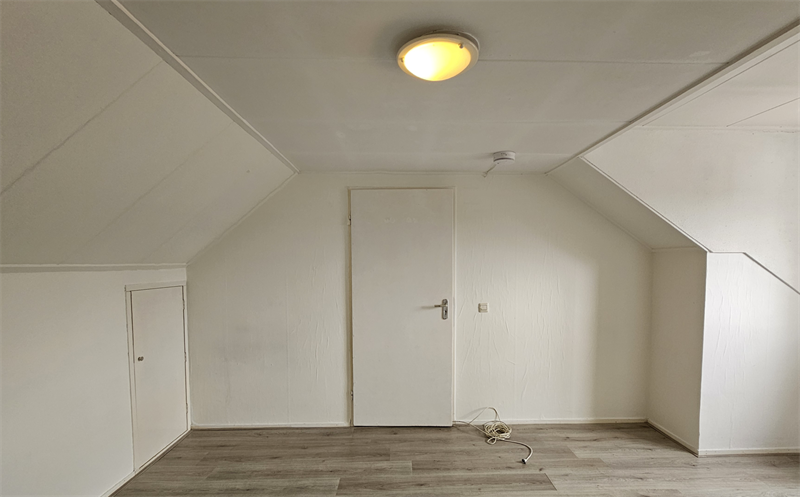 Via de trap bereik je de eerste verdieping, waar zich drie slaapkamers bevinden en een badkamer met toilet, douche en wastafel. De eerste kamer bevindt zich aan de achterzijde en is circa 9 m², de tweede kamer bevindt zich ook aan de achterzijde en is ruim 17 m², en de laatste kamer op deze etage ligt aan de voorzijde en is ruim 13 m². Tot slot bereik je via de tweede trap de zolder met de laatste slaapkamer van 16 m². Daarnaast is er op zolder nog een gezamenlijke berging aanwezig.