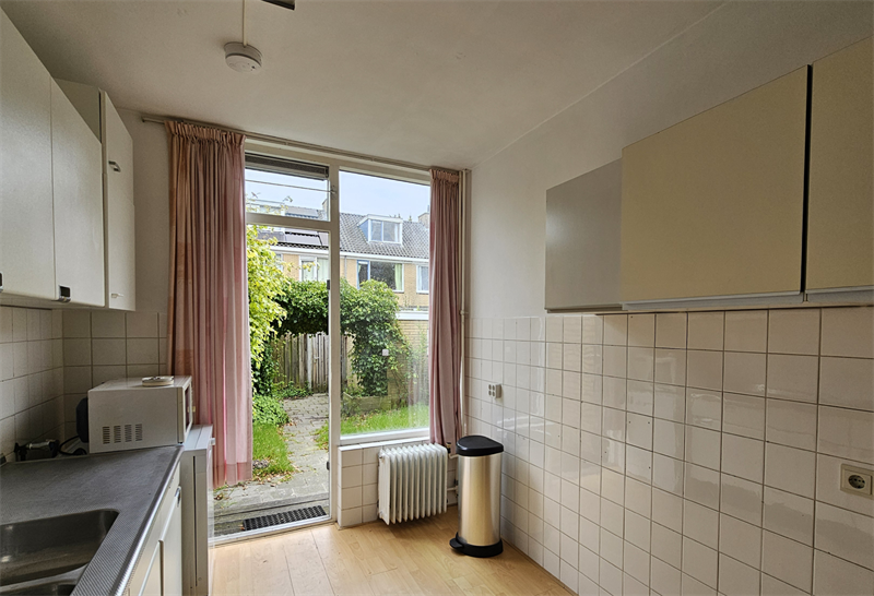 Binnen 9 minuten fietsen bereik je station Groningen Noord en binnen 13 minuten het Centraal Station van Groningen.Indeling Via de entree bereik je de hal van de woning, die toegang biedt tot de keuken, het toilet en de eerste twee ruime slaapkamers. De kamer aan de voorzijde is ruim 13 m² en de kamer aan de achterzijde is maar liefst 14 m². De keuken met inbouw-afzuigkap is 9 m² en de achtertuin is te bereiken via de keuken; deze is maar liefst 55 m². In de achtertuin bevindt zich ook nog een fietsenberging van 9 m².