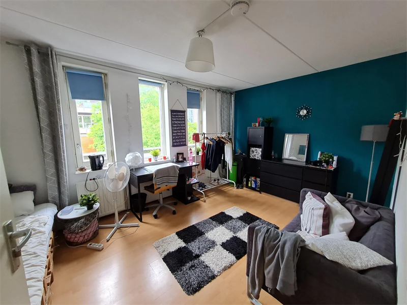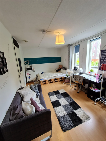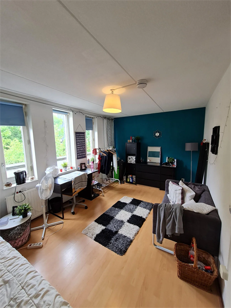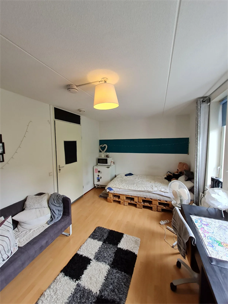 De kamer is goed in te delen! De kamer is gelegen op de eerste verdieping aan de achterkant kant van het huis, de kamer is 15m2. Badkamer, toilet en keuken deel je met 3 huisgenoten.
