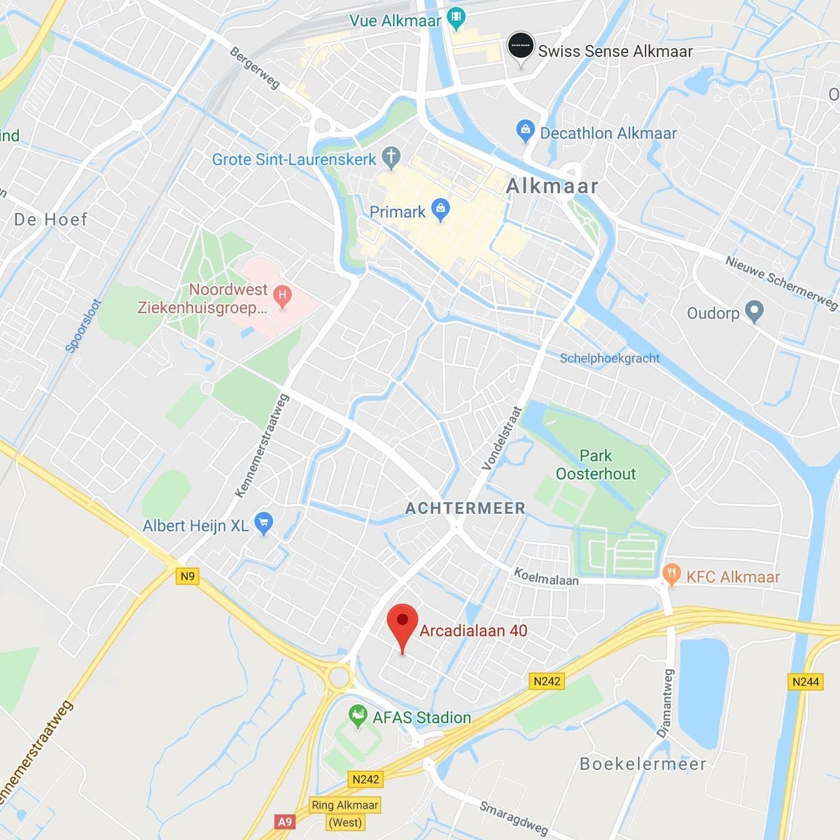 Bushalte: direct voor de deur bij Hotel Alkmaar (Arcadialaan 6), met diverse verbindingen naar het centrum en andere stadsdelen.
