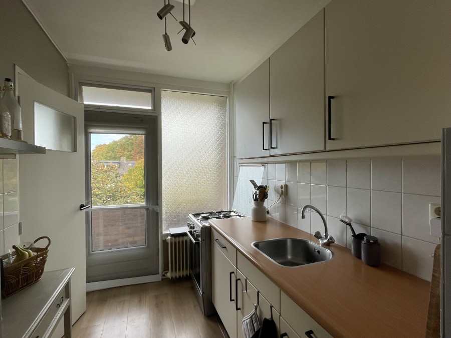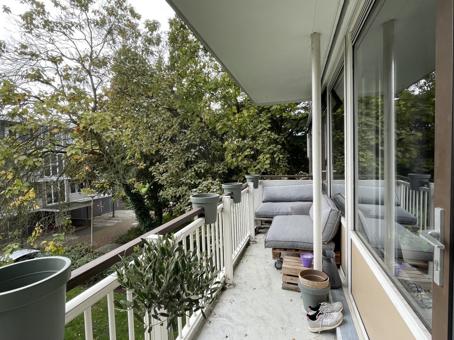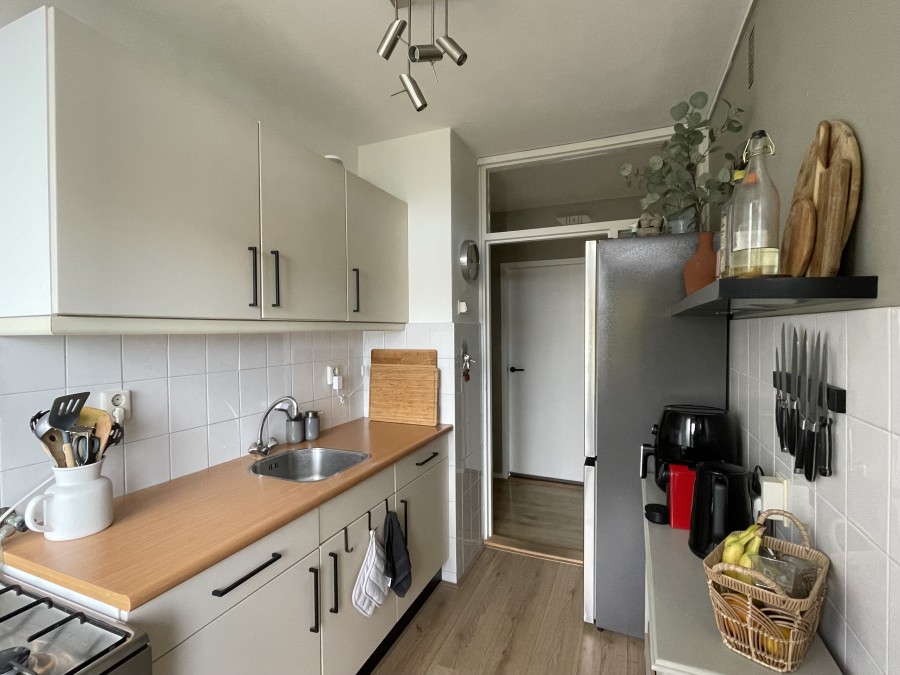Het appartement is maar liefst 67m2 groot, bevindt zich op de tweede etage en beschikt over een balkon aan zowel de voor- als de achterzijde van het complex. De supermarkt bevindt zich om de hoek en er zijn verschillende bushaltes op loopafstand., Indeling: Je komt binnen in het entree met een hal met toegang tot alle vertrekken. De zeer ruime woonkamer met toegang tot de badkamer is voorzien van grote raampartijen. Via de keuken heb je toegang tot het eerste balkon welke een klein opberghok beschikt.