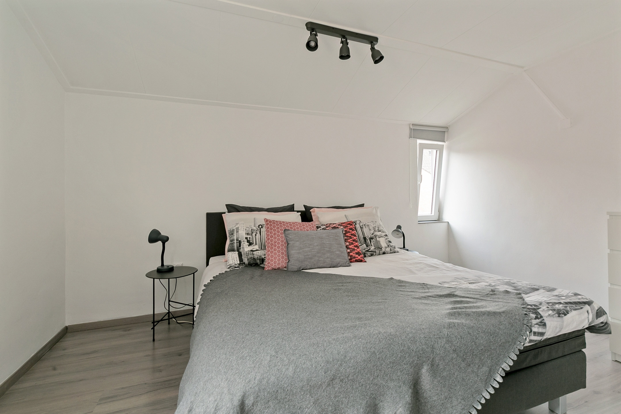 Ruime slaapkamer met laminaatvloer, vanuit de slaapkamer toegang naar de badkamer. Geheel betegelde moderne badkamer met ligbad-douchecombinatie met regendouche en wastafel meubel. 2e Verdieping: Middels vaste trap bereikbare zolderkamer met dakraam, laminaatvloer, diverse bergruimte, standplaats CV - installatie en witgoedaansluitingen. Prima te gebruiken als 2e slaapkamer.