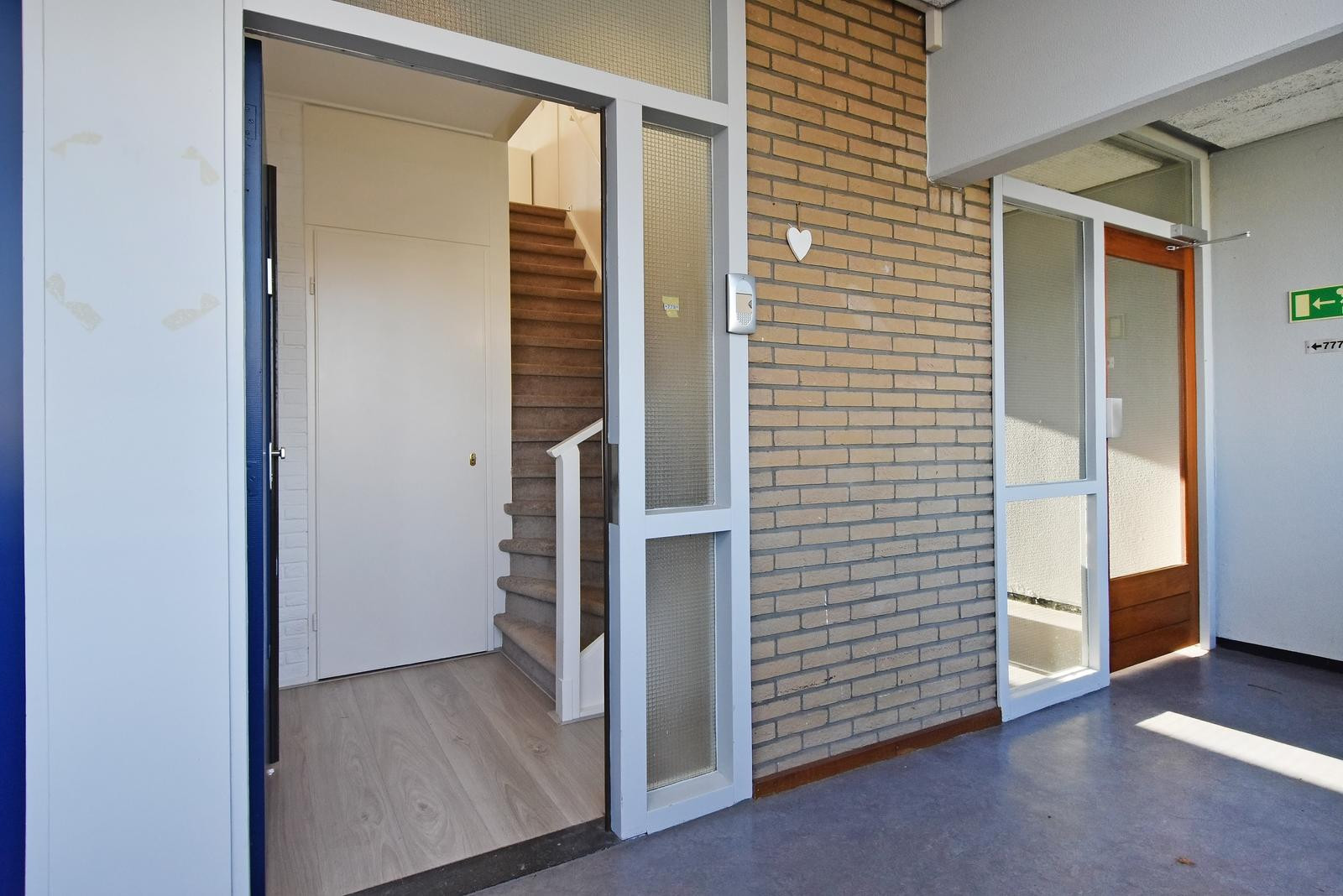 Aan zowel de voor- als achterzijde bevindt zich een balkon - perfect om van de zon te genieten. De woning beschikt daarnaast over een privé berging en een eigen parkeerplaats op het afgesloten terrein achter het gebouw - een groot pluspunt op deze centrale locatie. Indeling; Gemeenschappelijke entree met bellentableau en brievenbussen. Trap naar de eerste verdieping.