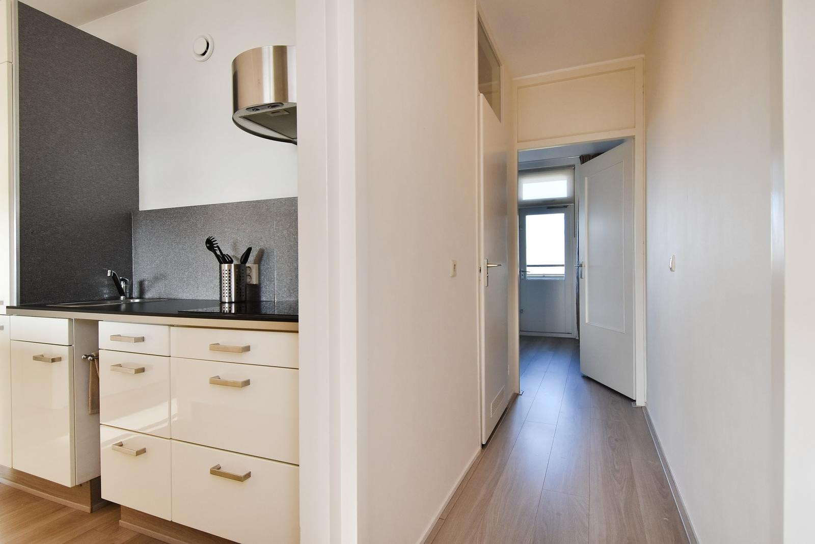 Entree appartement met hal, meterkast en bergruimte met opstelplaats voor wasmachine en droger. Toegang tot de woonkamer met open keuken en balkon aan de achterzijde. Via de hal zijn de badkamer en slaapkamer bereikbaar. De slaapkamer ligt aan de voorzijde en heeft toegang tot het tweede balkon.
