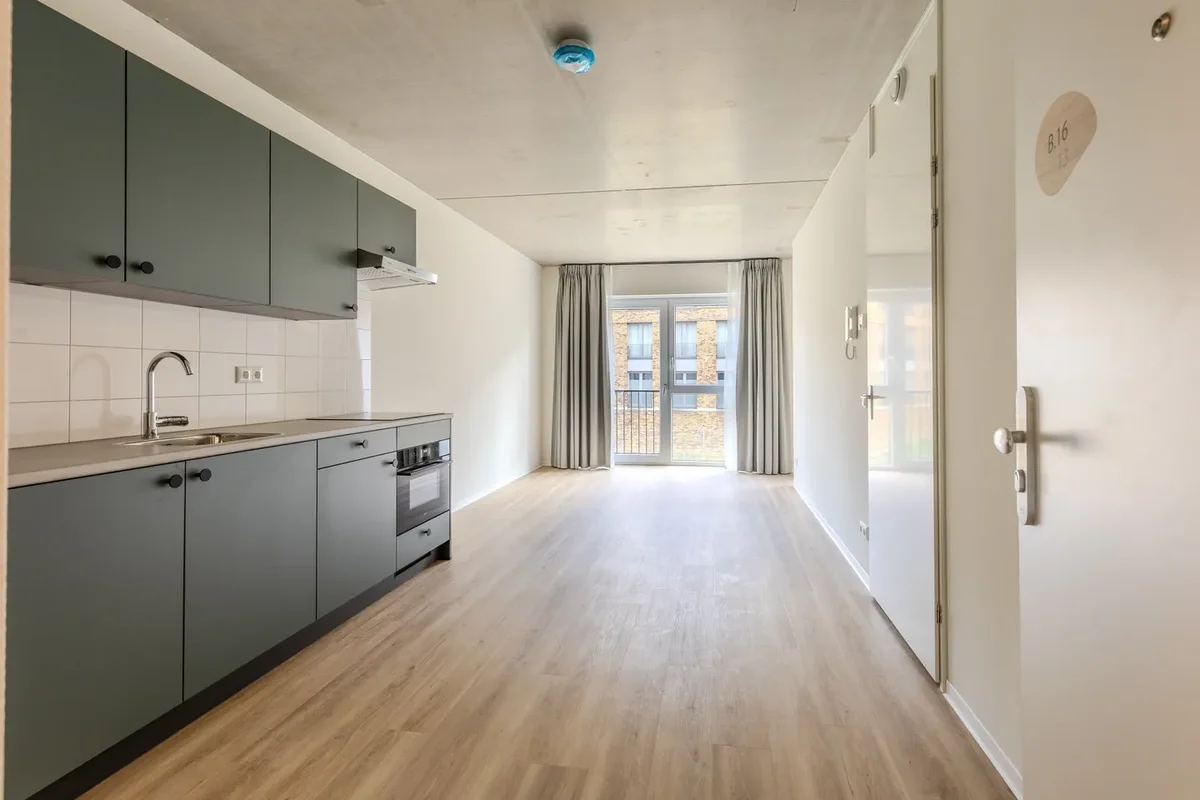 Dit gestoffeerde appartement -exclusief voor jongeren tussen de 18 en 28 jaar- is voorzien van alle gemakken en luxe. Het appartement bestaat uit een lichte woonkamer met open keuken (incl. inbouwapparatuur), slaapkamer, separaat toilet en een moderne badkamer. Op de begane grond vind je diverse gedeelde faciliteiten, zoals een gezamenlijke ruimte, een Miele-wasserette, een fietsenstalling, een grote binnentuin en toegang tot de lift.