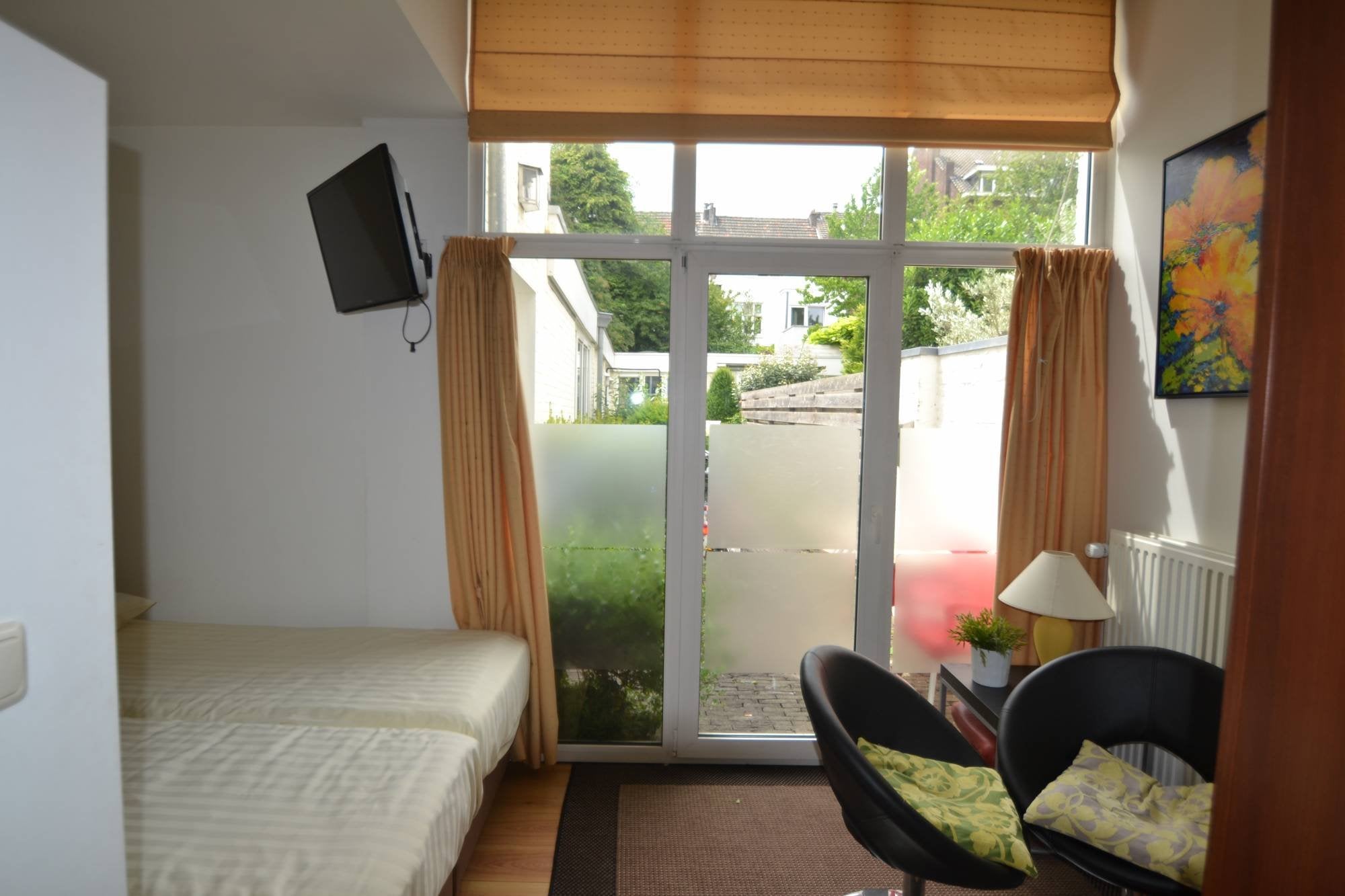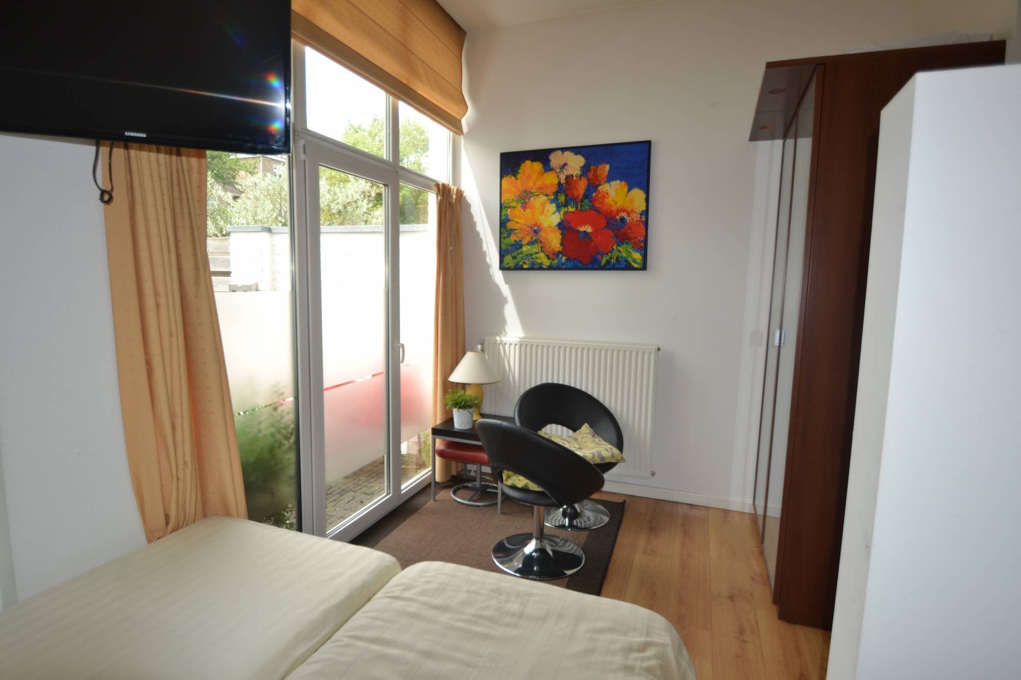 De studio's is voorzien van meubilering te weten garderobekast, bed, televisie, eettafel, stoelen/fauteuils. Verder is raamdecoratie en beddengoed aanwezig. Tot slot is er directe toegang tot de gemeenschappelijke tuin .v. een schuifpui.