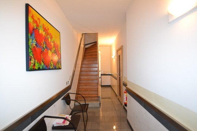 Vanuit de gemeenschappelijke hal met trappenhuis zijn de verschillende studio's te bereiken.