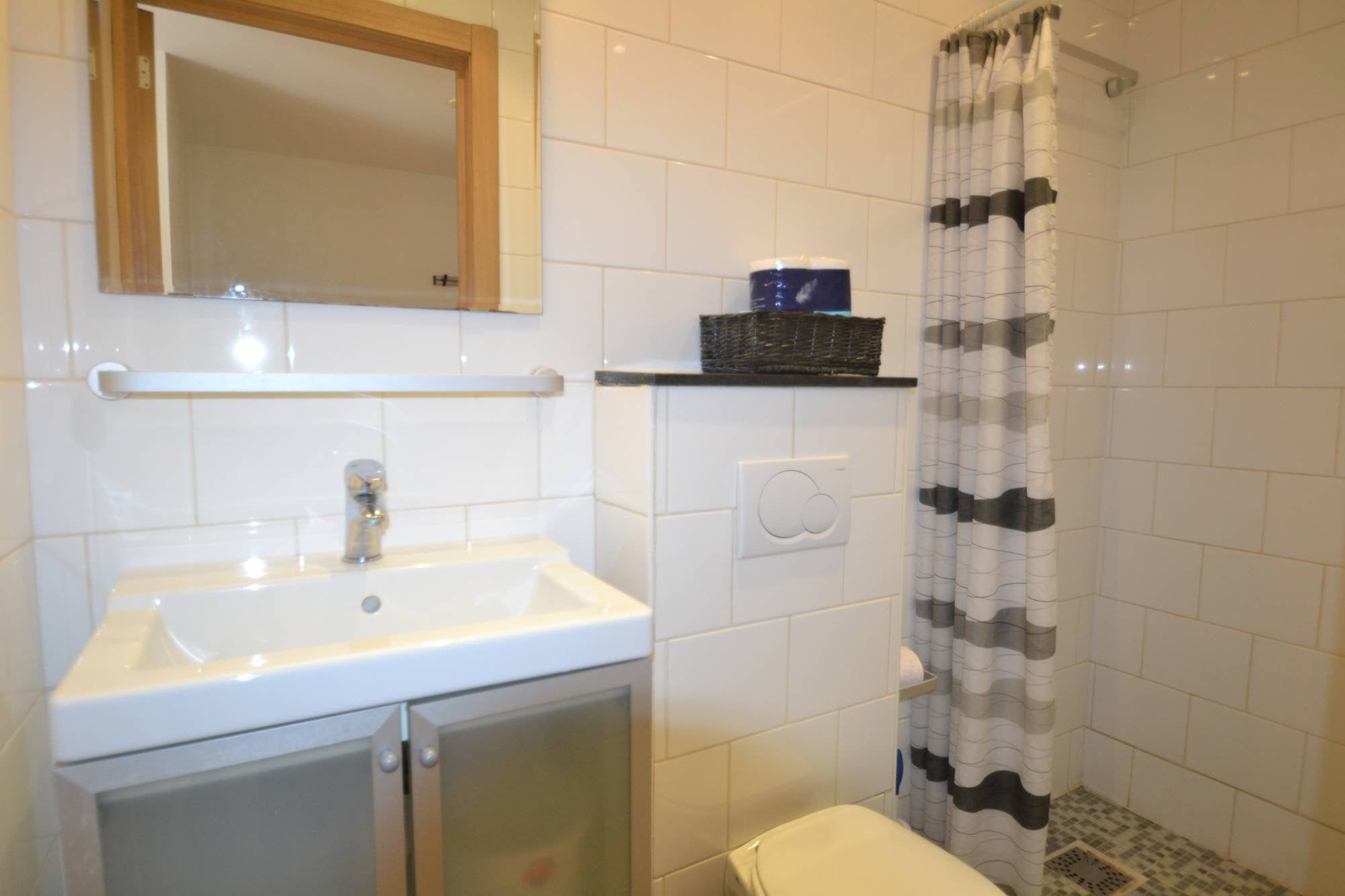 Studio beschikt over een open keuken . een elektrische kookplaat, afzuigkap, combi oven en koelkast. De eigen badkamer is . een inloopdouche, wastafel met meubel en toilet.