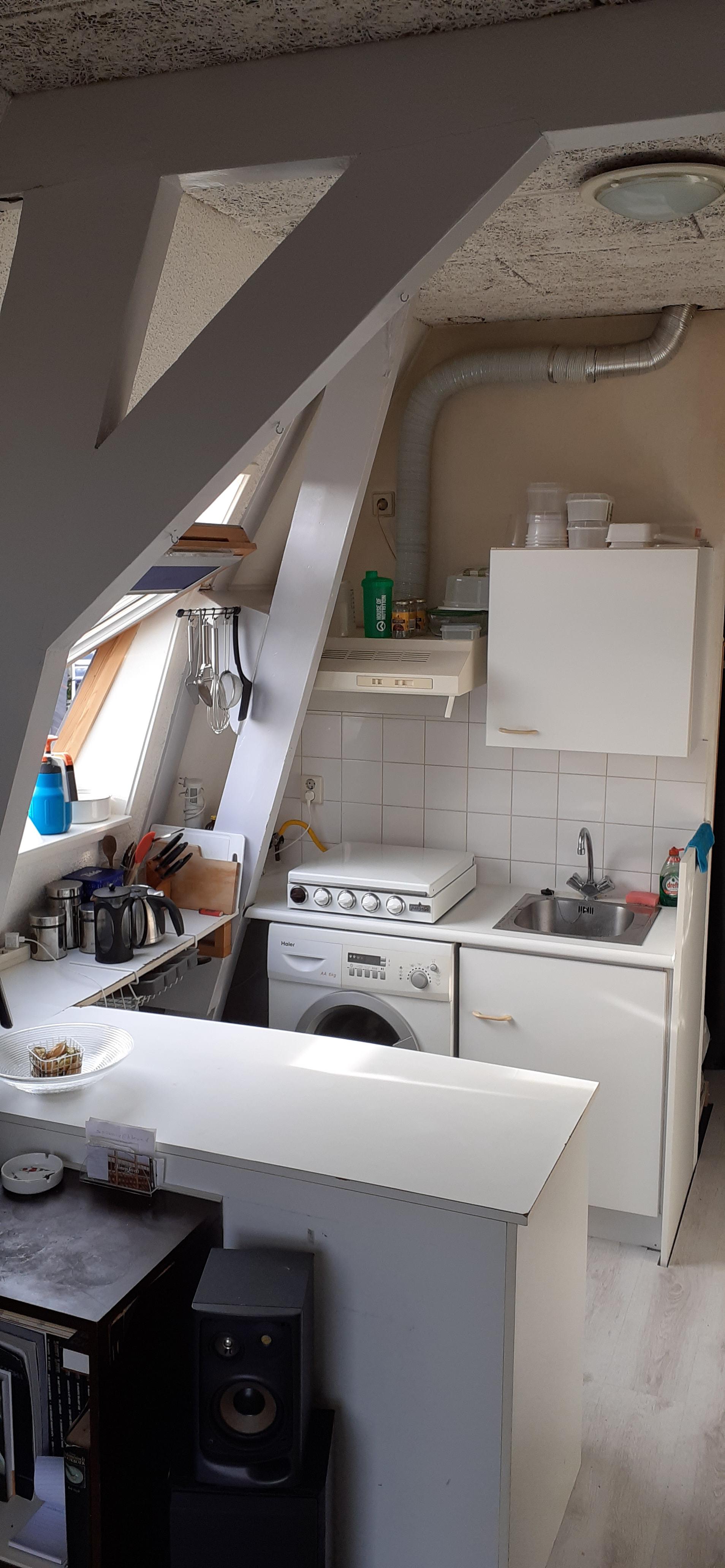 Tegen het centrum van Hilversum, op de 2e etage , rustig gelegen, knusse, lichte studio. Ruime woonkamer met open keuken, separate slaapkamer en douche. WC wordt met 1 persoon gedeeld, maar is direct vanuit de studio toegankelijk. De gehele studio is gestoffeerd.