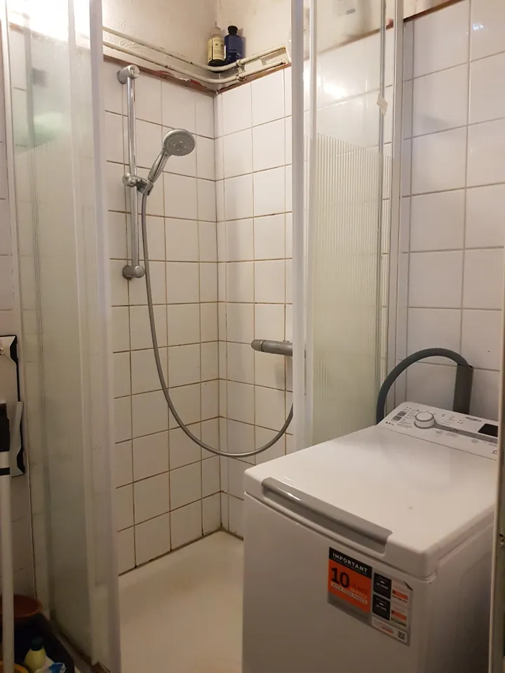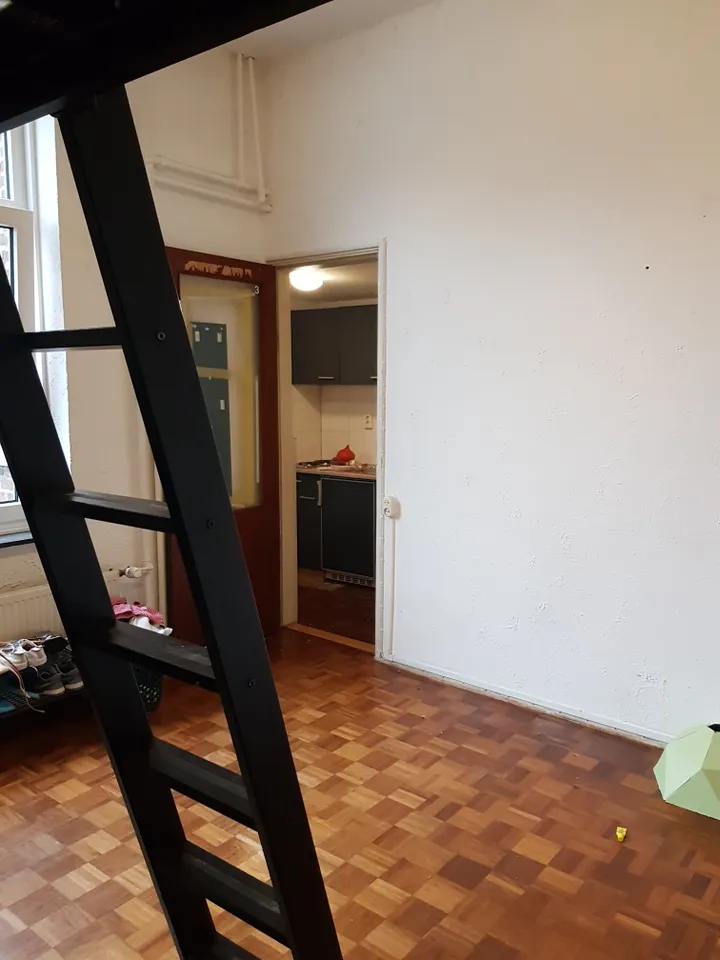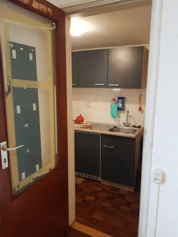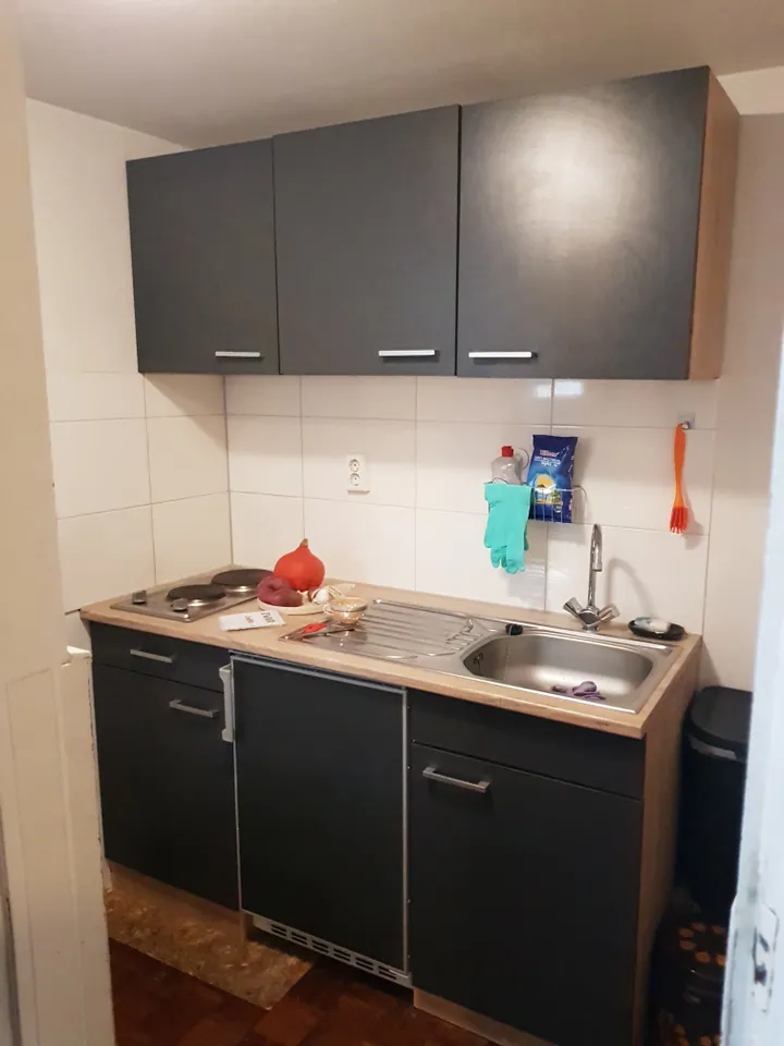 Nice room in a studenthouse with a living/bedroom and a small kitchen room with kitchenblock, with a fridge and coockingplate.