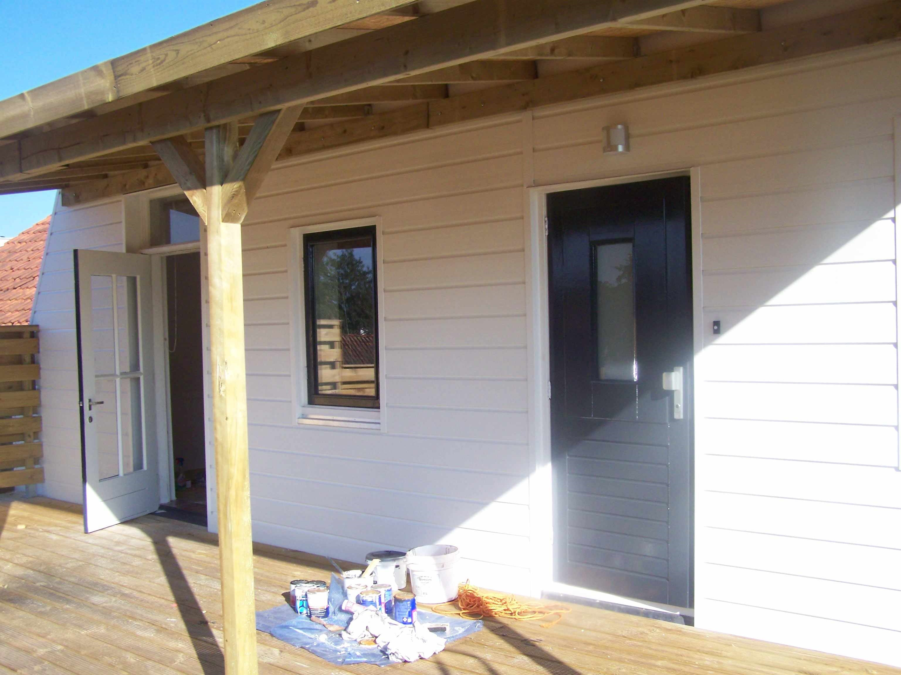 Ook zijn er een wasmachine en droger aanwezig. In de badkamer zit een douchecabine, een inbouwkast voor de handdoeken, toilet en vaste wastafel. Voor de voordeur ligt een ruim omheind terras, welke gedeeltelijk overdekt is. Indeling Trapopgang 2x Eerste verdieping Omheind terras, voordeur met gang, meterkast, keuken met inbouwapparatuur, wasmachine en droger, badkamer met toilet, vaste wastafel, douche en vast kastje.