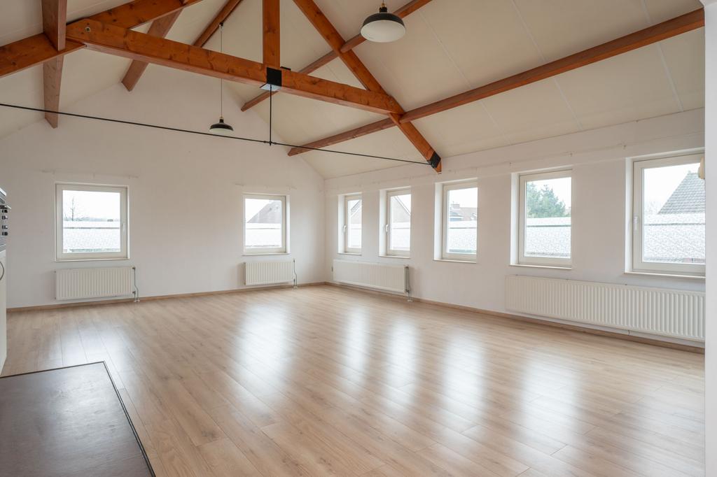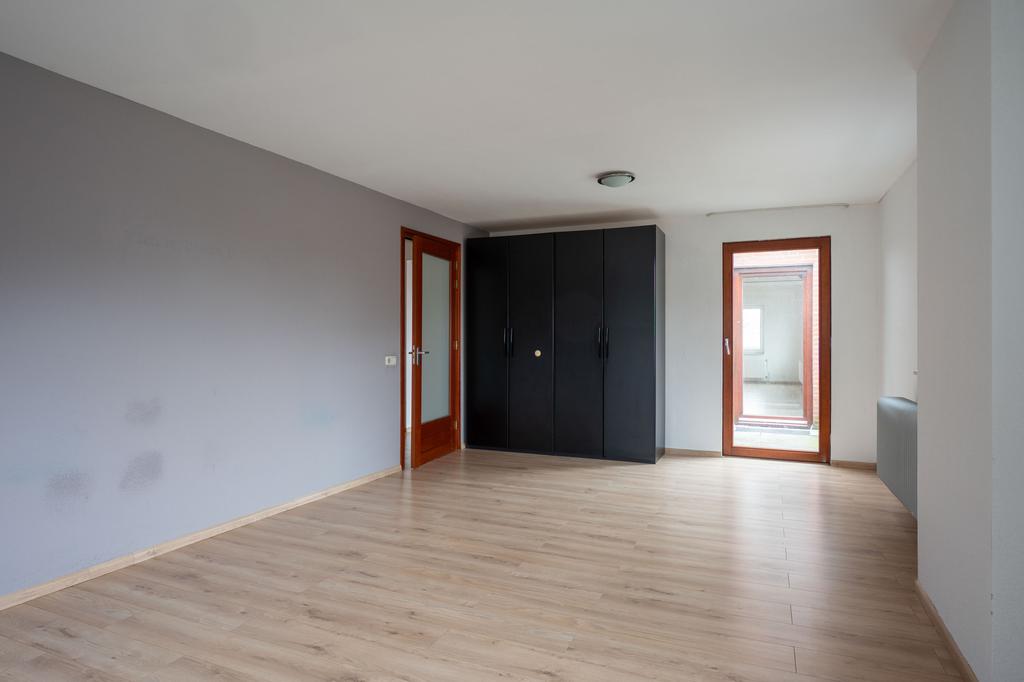 Het is een uiterst grote slaapkamer die opgesplitst kan worden in 2 ruimten. De slaapkamer is net zoals de rest van de bovenwoning afgewerkt met een laminaatvloer.