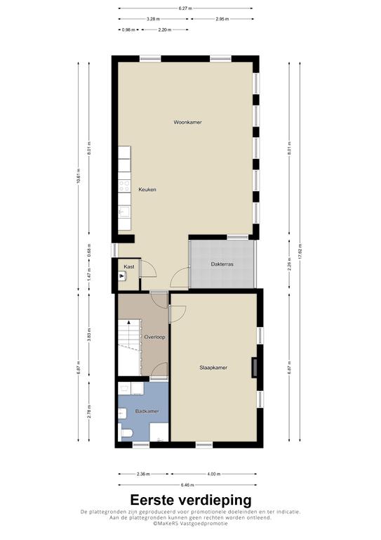 d het dakterras is gelegen tussen de slaapkamer en het leefgedeelte en kent een afmeting van 2.97 x 2.37m.
