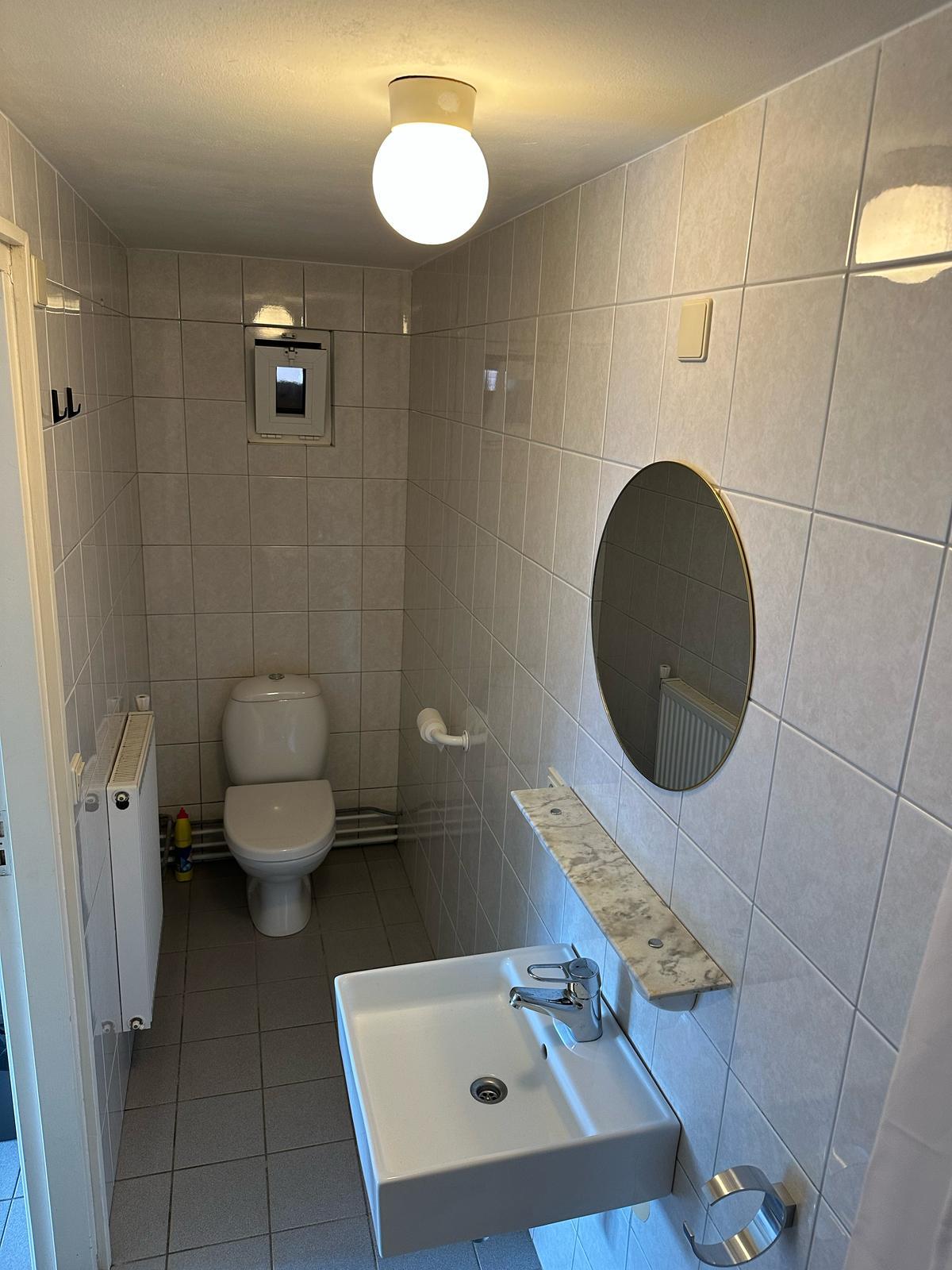 Aan de linkerkant vind je een apart toilet met een wastafeltje.