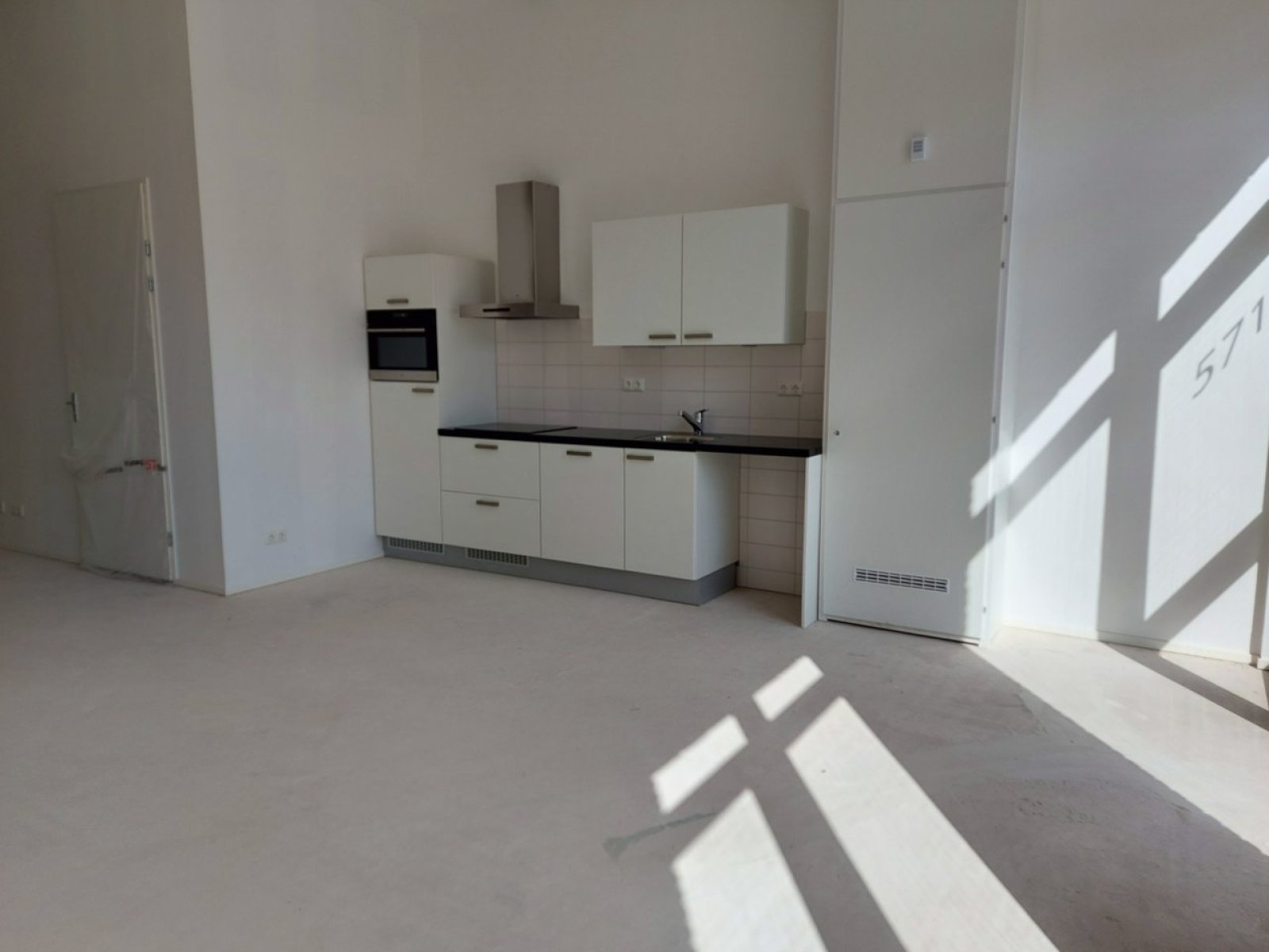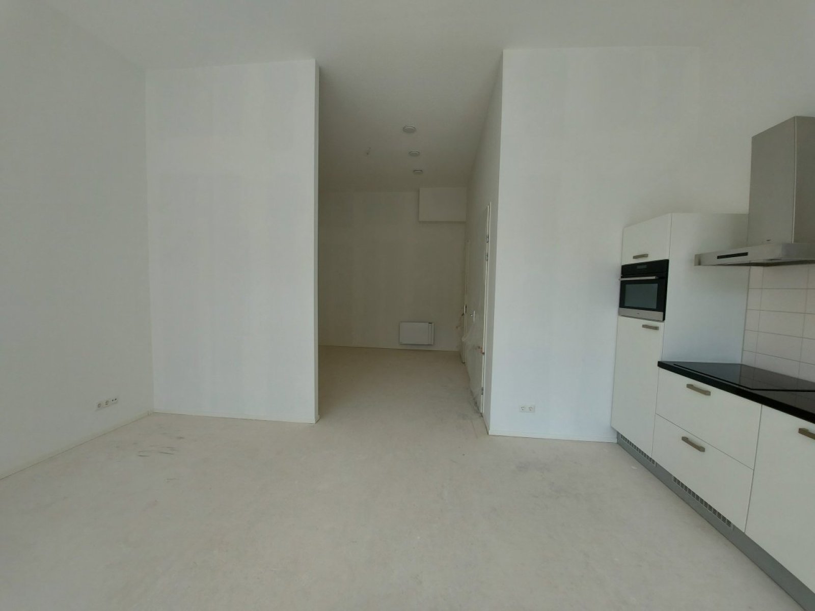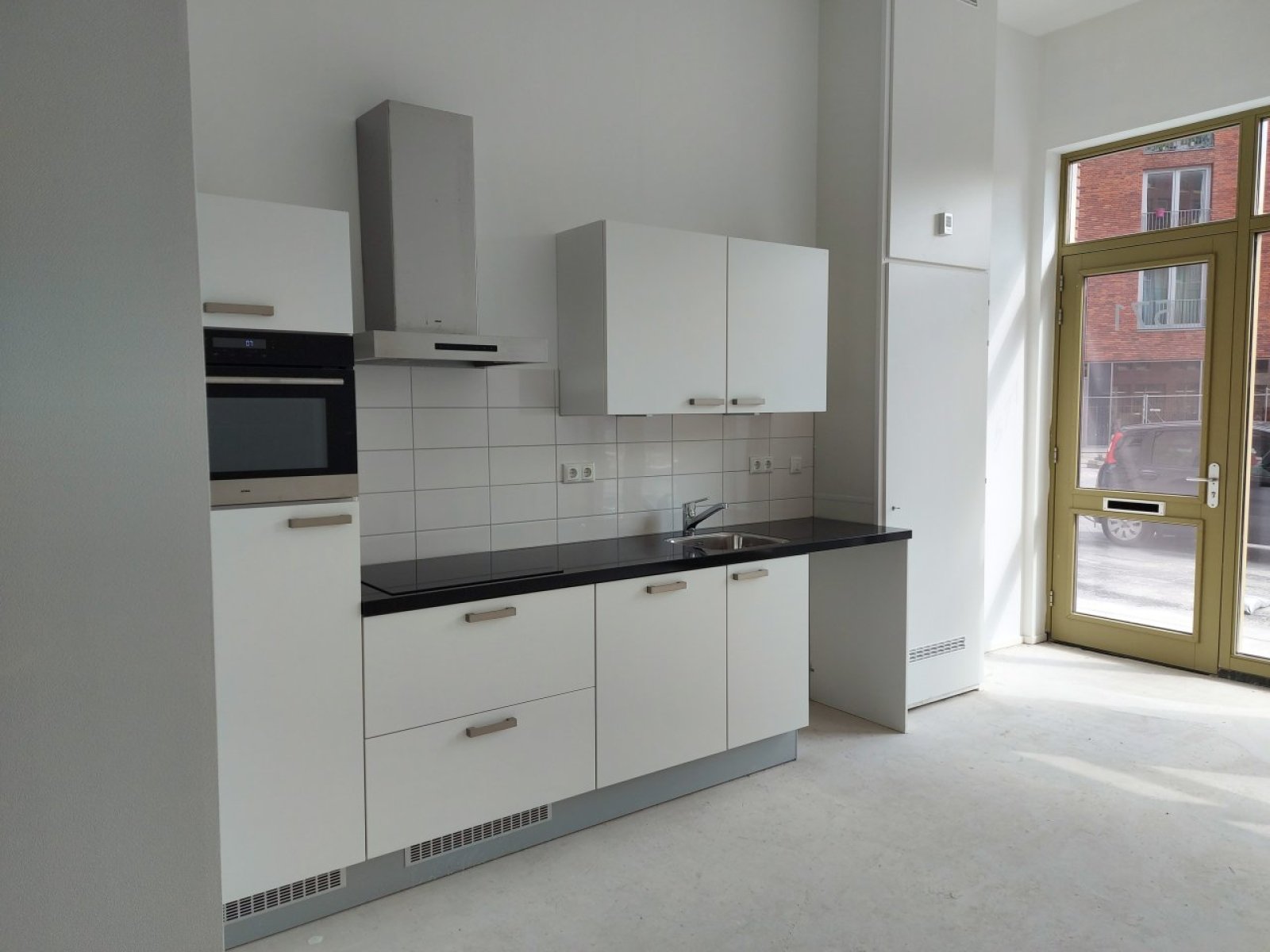 In deze studio val je meteen met de deur in huis en kom je binnen in je woonkamer met open keuken. De Bribus keuken heeft een efficiënte rechte opstelling, en heeft met de witte kasten en zwart composiet werkblad een strakke tijdloze uitstraling. Je hebt hier alles bij de hand voor het bereiden van een gezond ontbijt of een driegangenmenu. Je keuken is namelijk voorzien van moderne ATAG inbouwapparatuur: een inductiekookplaat, afzuigkap, vaatwasser, oven met geïntegreerde magnetron en koel- / vriescombinatie.
