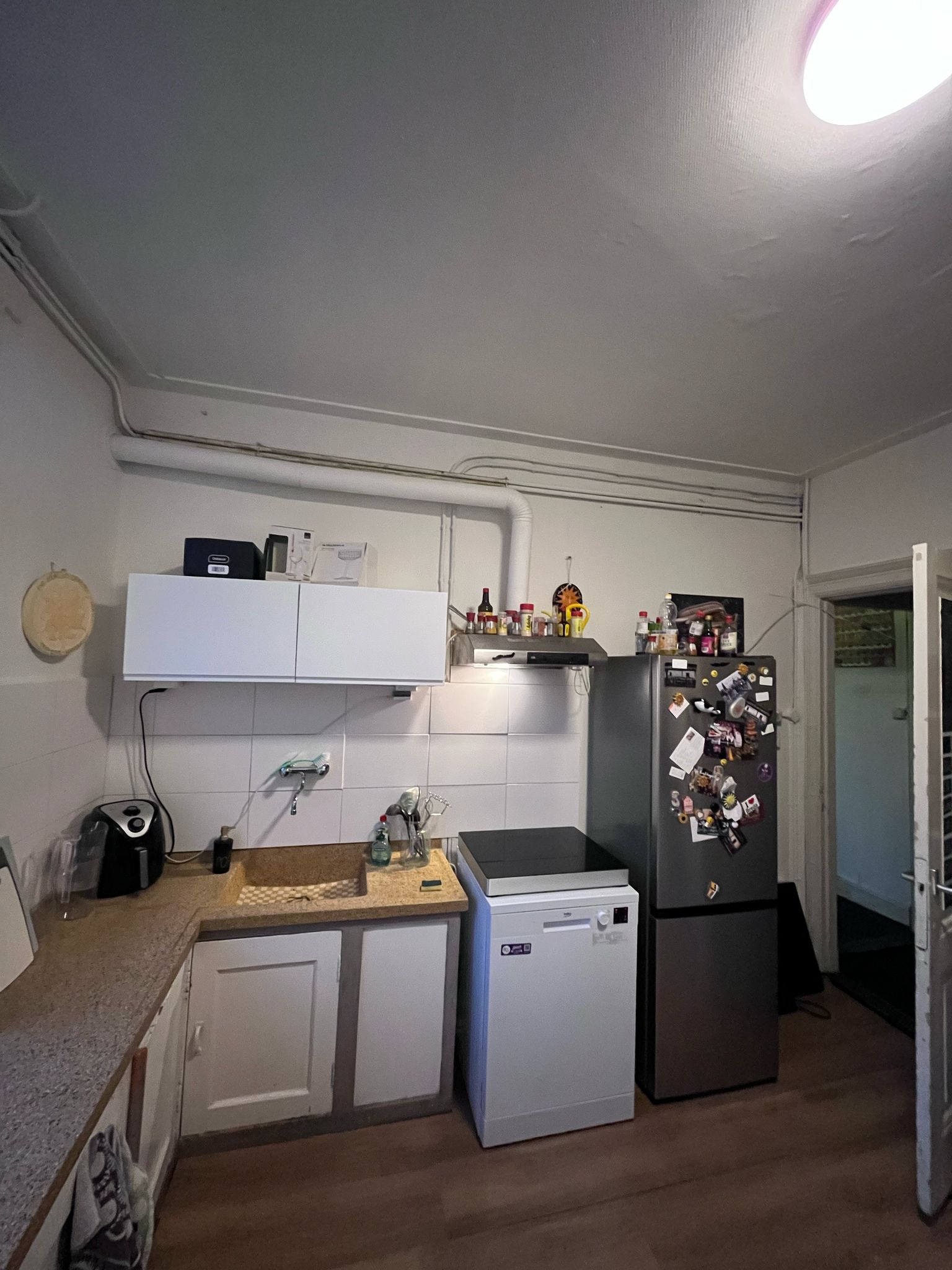 We hebben een gedeelde woonkamer, keuken, badkamer en wc.