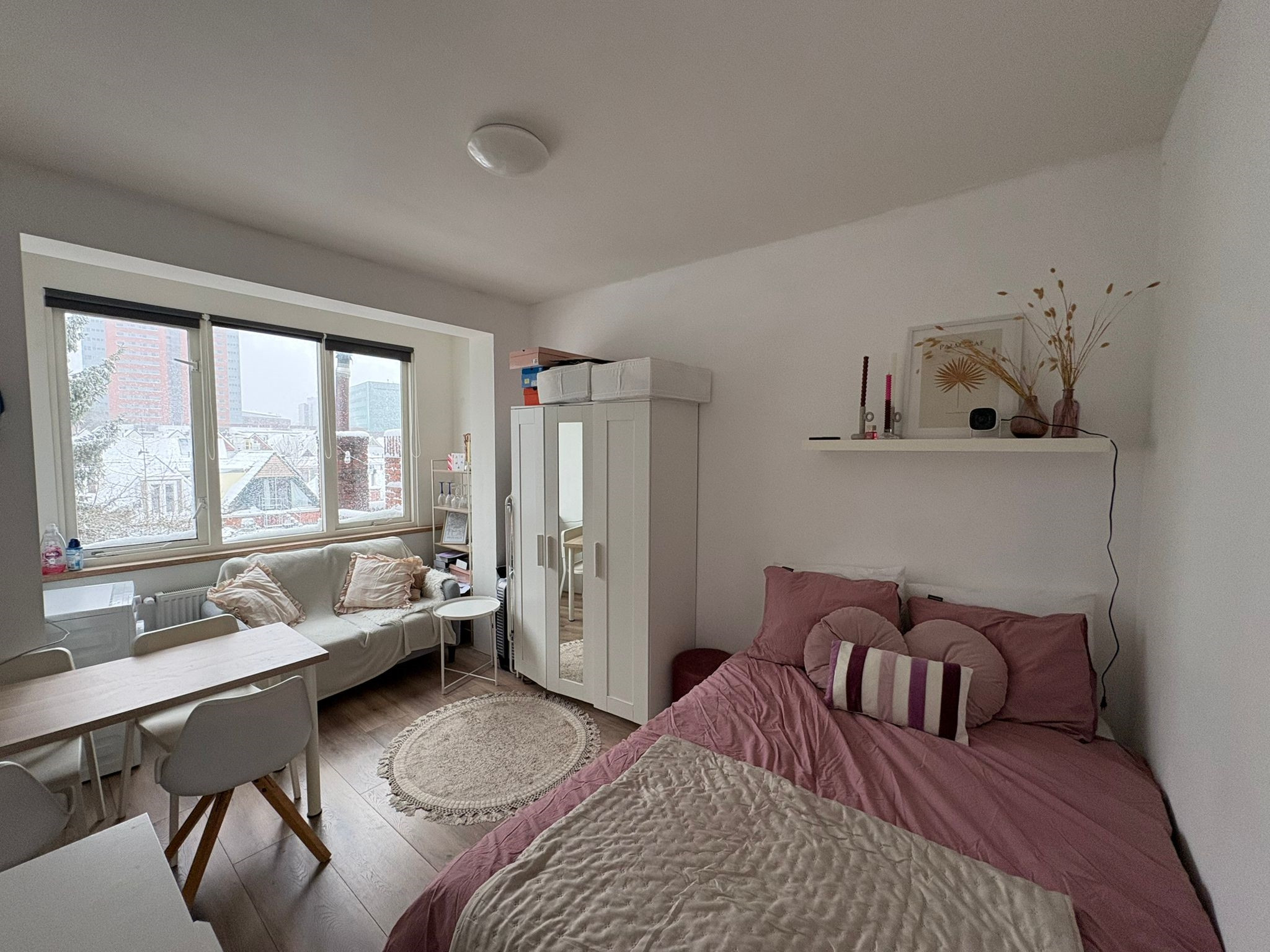 Je komt binnen in de woon/slaapkamer met open keuken, die is voorzien van een afzuigkap, inductiekookplaat, oven, koelkast, vriezer en vaatwasser. De badkamer beschikt over een douche en wastafel. Daarnaast heeft de studio een apart toilet. Huurprijs en borg: De huurprijs bedraagt €977,97 per maand, inclusief een voorschot van €100,- voor gas, water, elektra en internet.