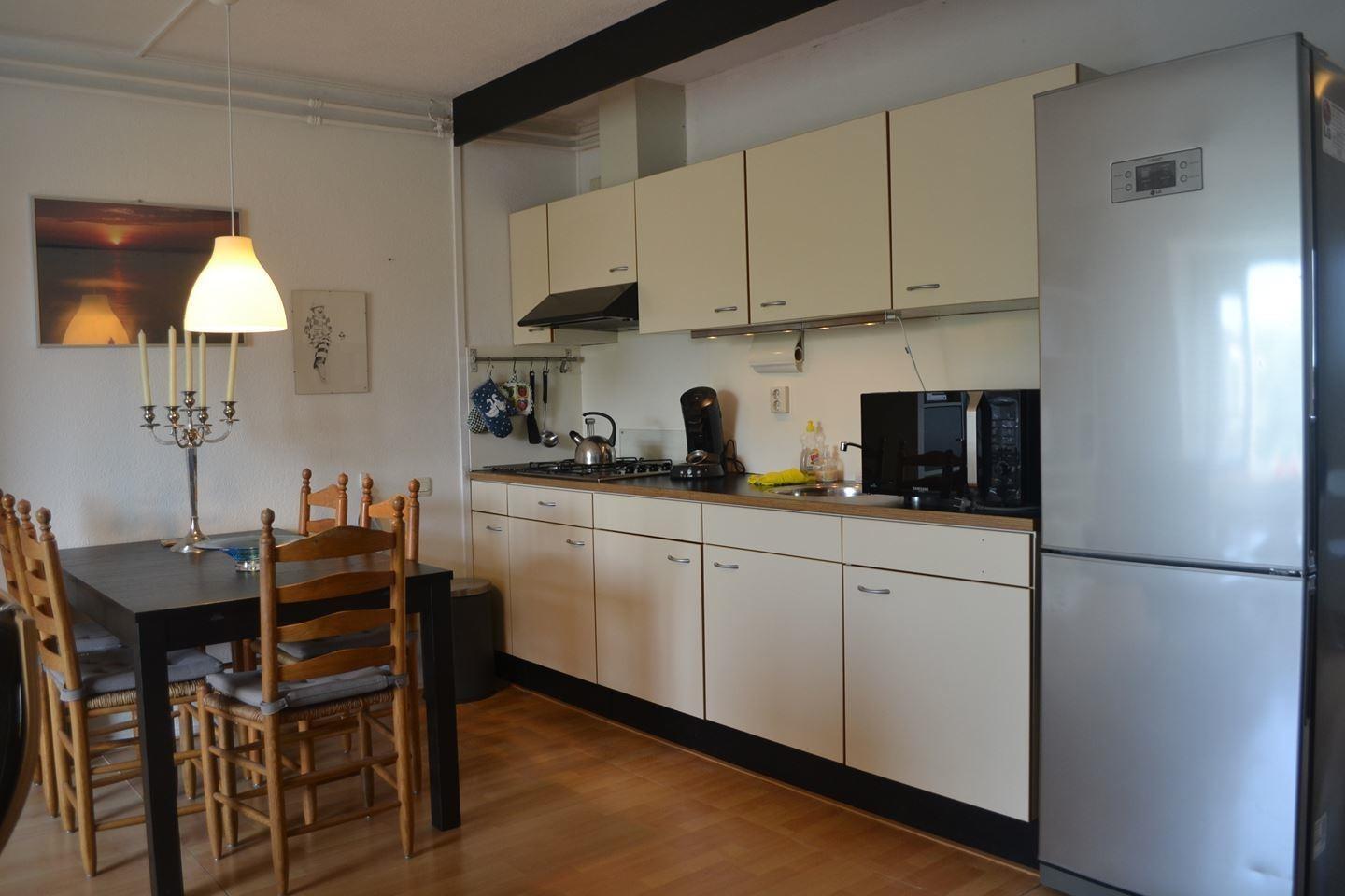 Indeling: Portiek met trap naar voorbalkon/terras op het zuiden, entree/hal, ruime trapkast, trap naar 2e verdieping: Open keuken voorzien van een keurig aanbouwkeukenblok in de woonkamer (ca.