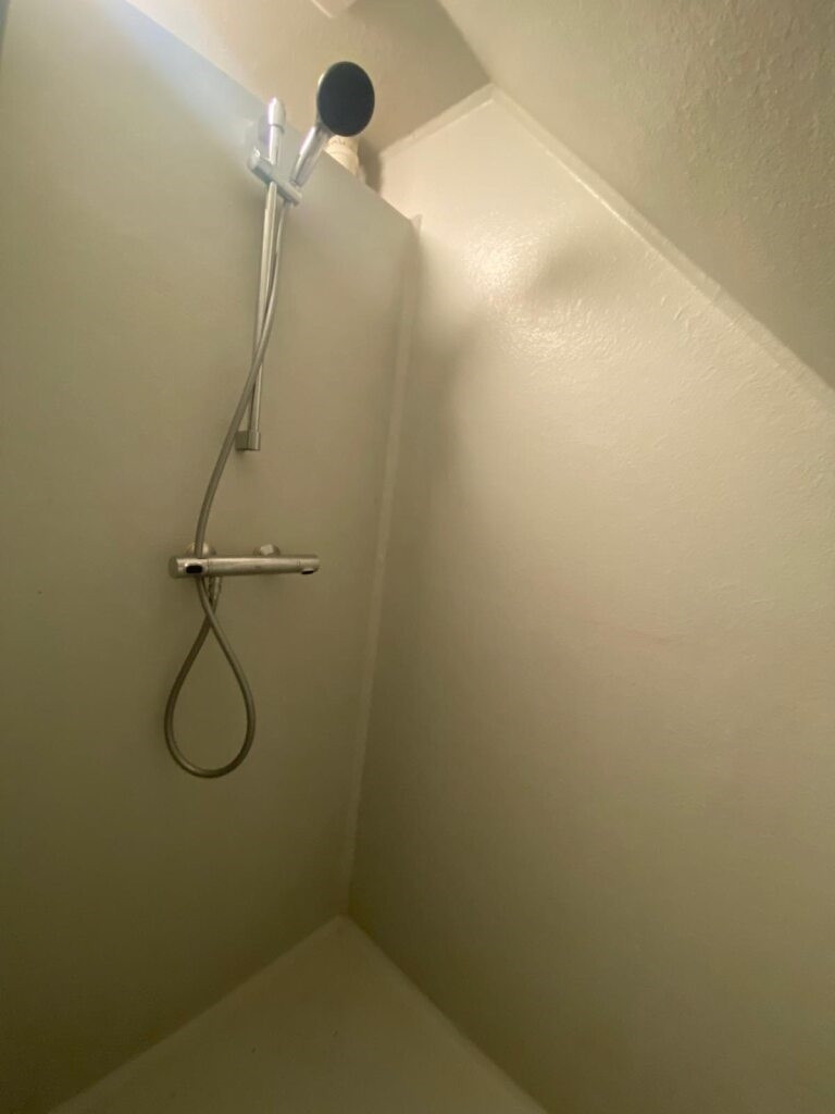Op de eerste en tweede verdieping liggen de slaapkamers. De badkamer is uitgerust met een douche en toilet. In totaal zijn er acht kamers in de woning. De gemeenschappelijke ruimtes worden gedeeld met 7 medebewoners.