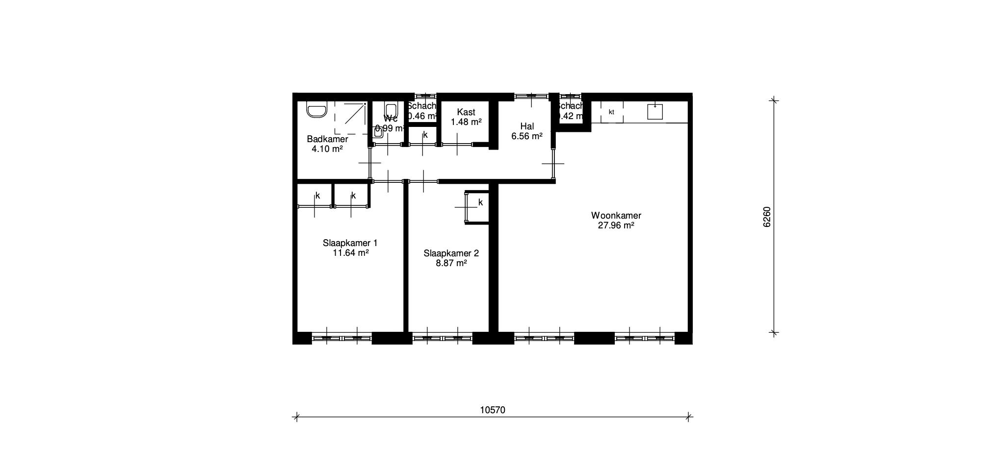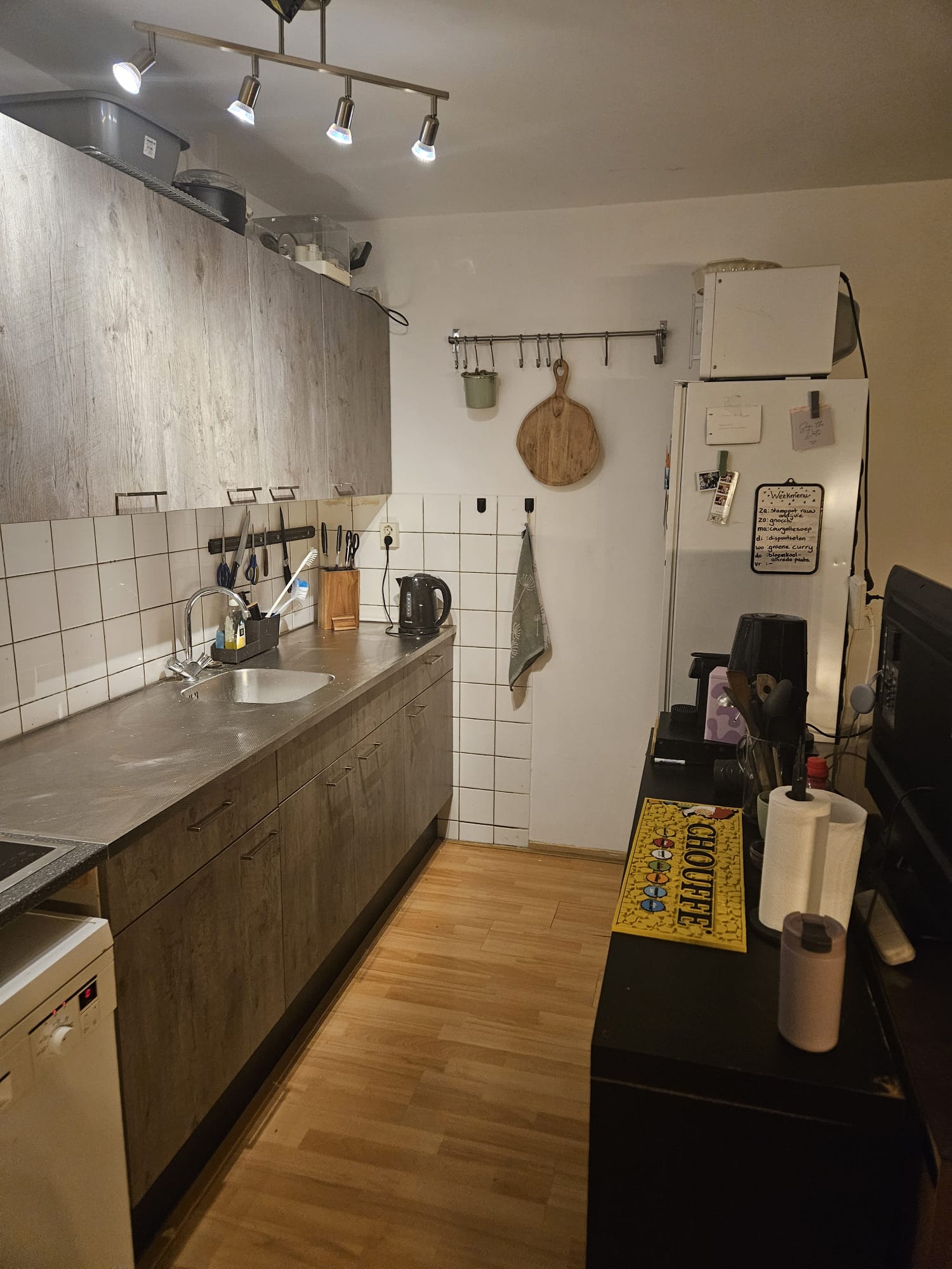 De kamer is 8,87 m² en je deelt de keuken, woonkamer en badkamer met mij.