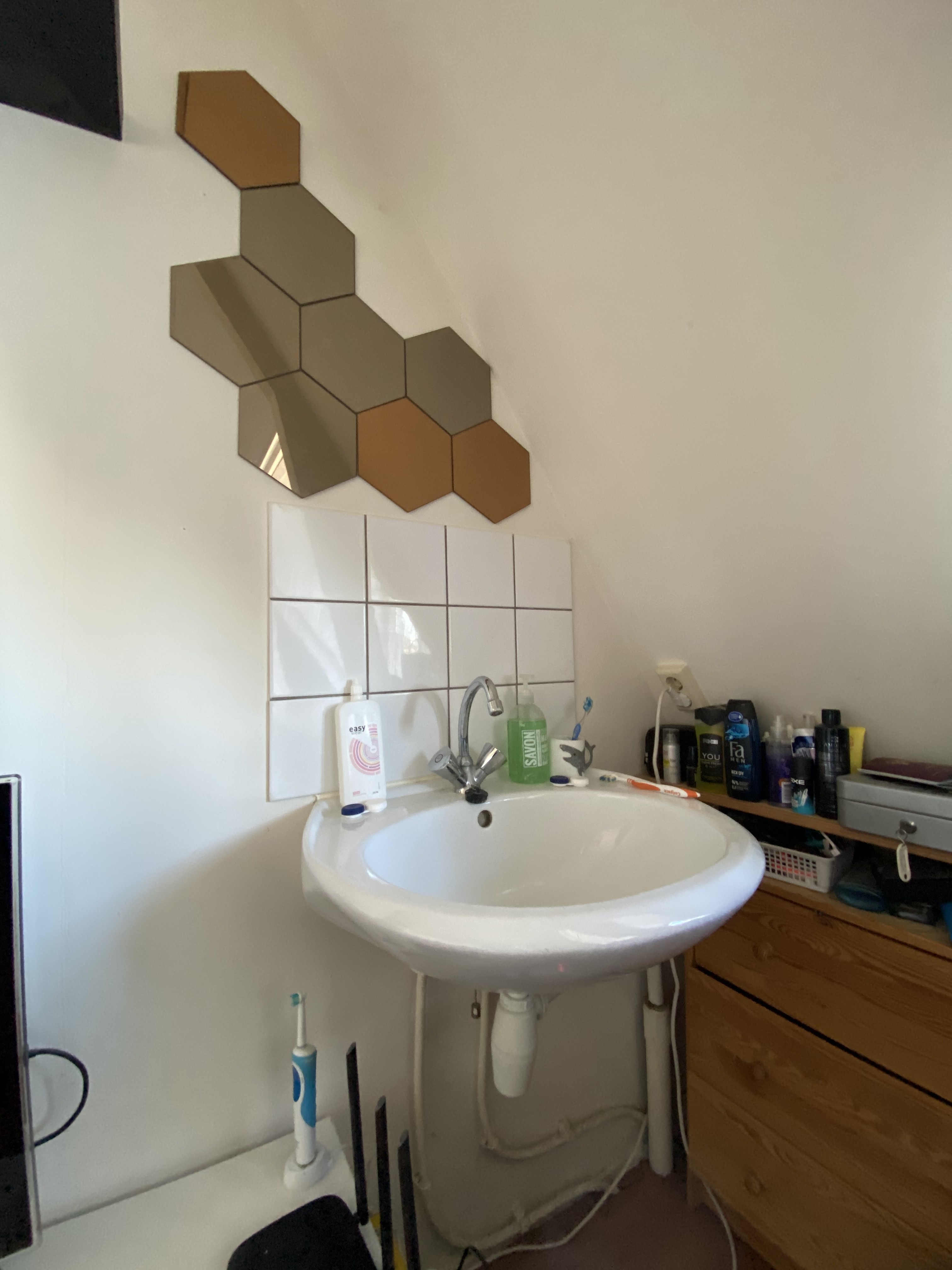 De kamer is ca. 14m² en beschikt over een eigen keukenblok en kookplaat. De ruimte wordt verwarmd door middel van centrale verwarming. Tevens is er een aparte wastafel aanwezig.