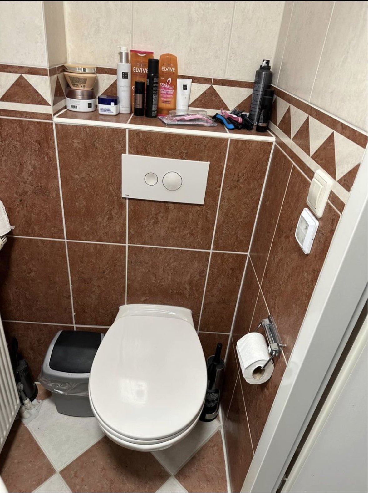 Gedeelde douche en toilet met slechts één dame. De kamer is gemeubileerd en inclusief alle meubels.