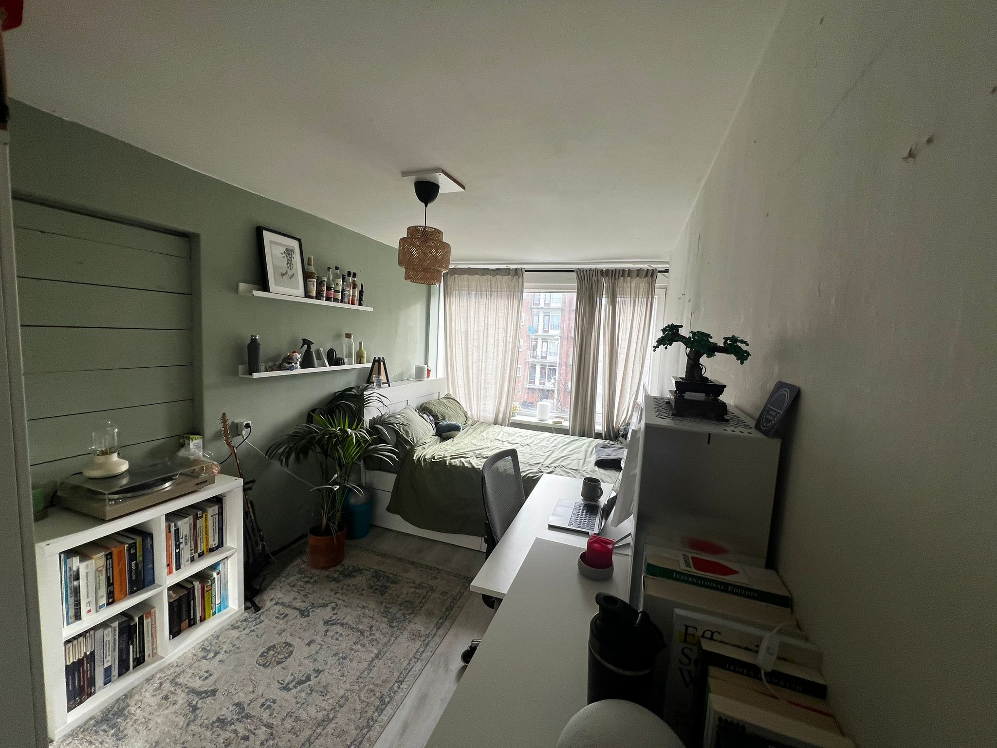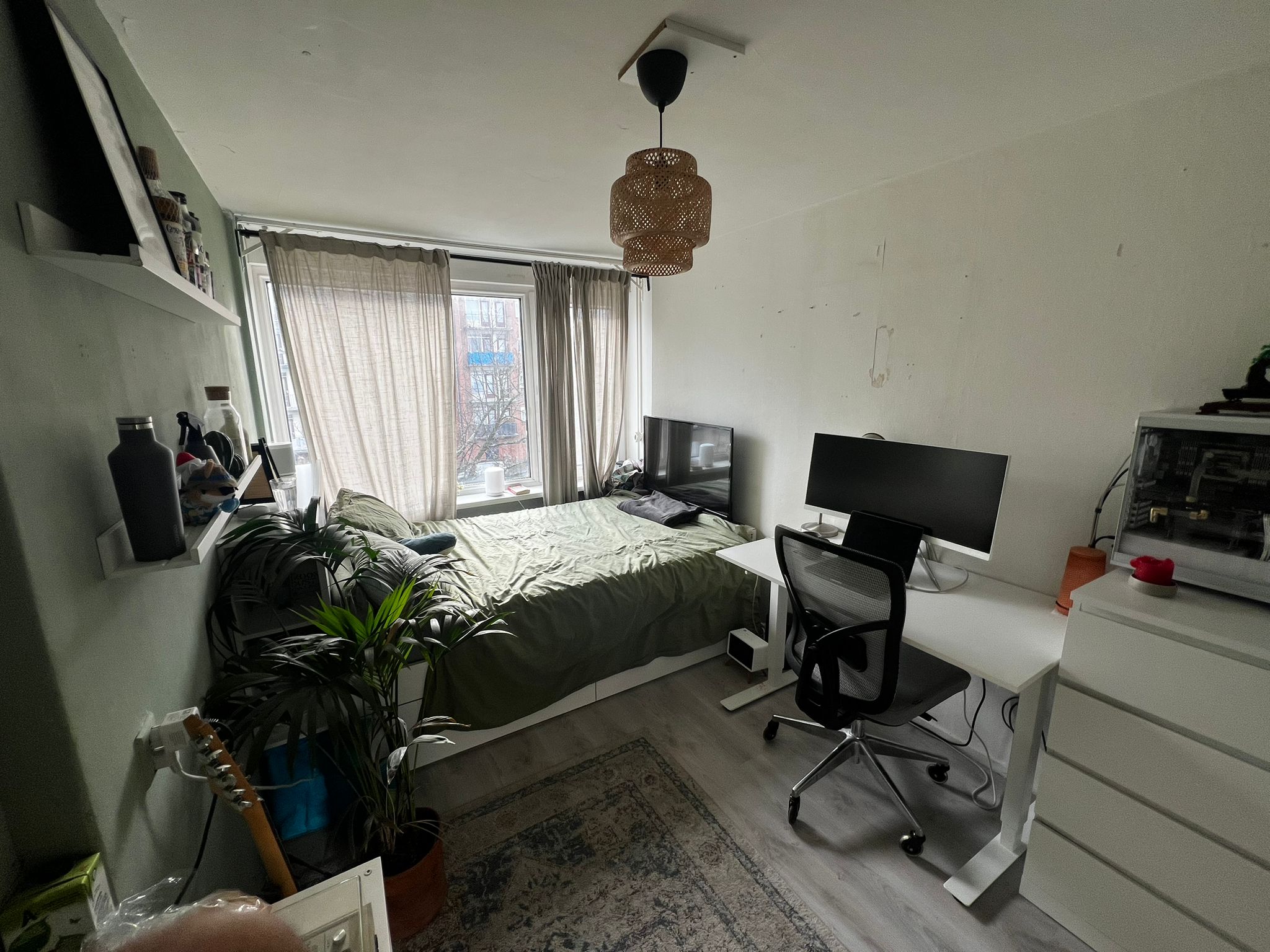 Foto's zijn van de kamer er naast, de kamers zijn exact hetzelfde, behalve dat de verhuurde kamer net iets groter is en een inbouwkast heeft..
