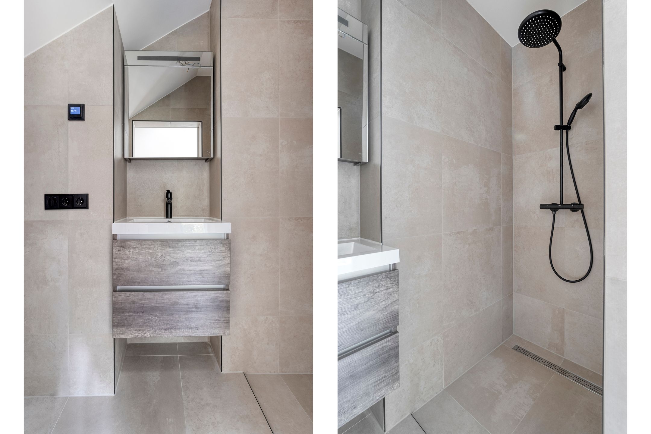 Verwarming middels vloerverwarming via warmtepomp met boiler en WTW en elektrische vloerverwarming (badkamer).