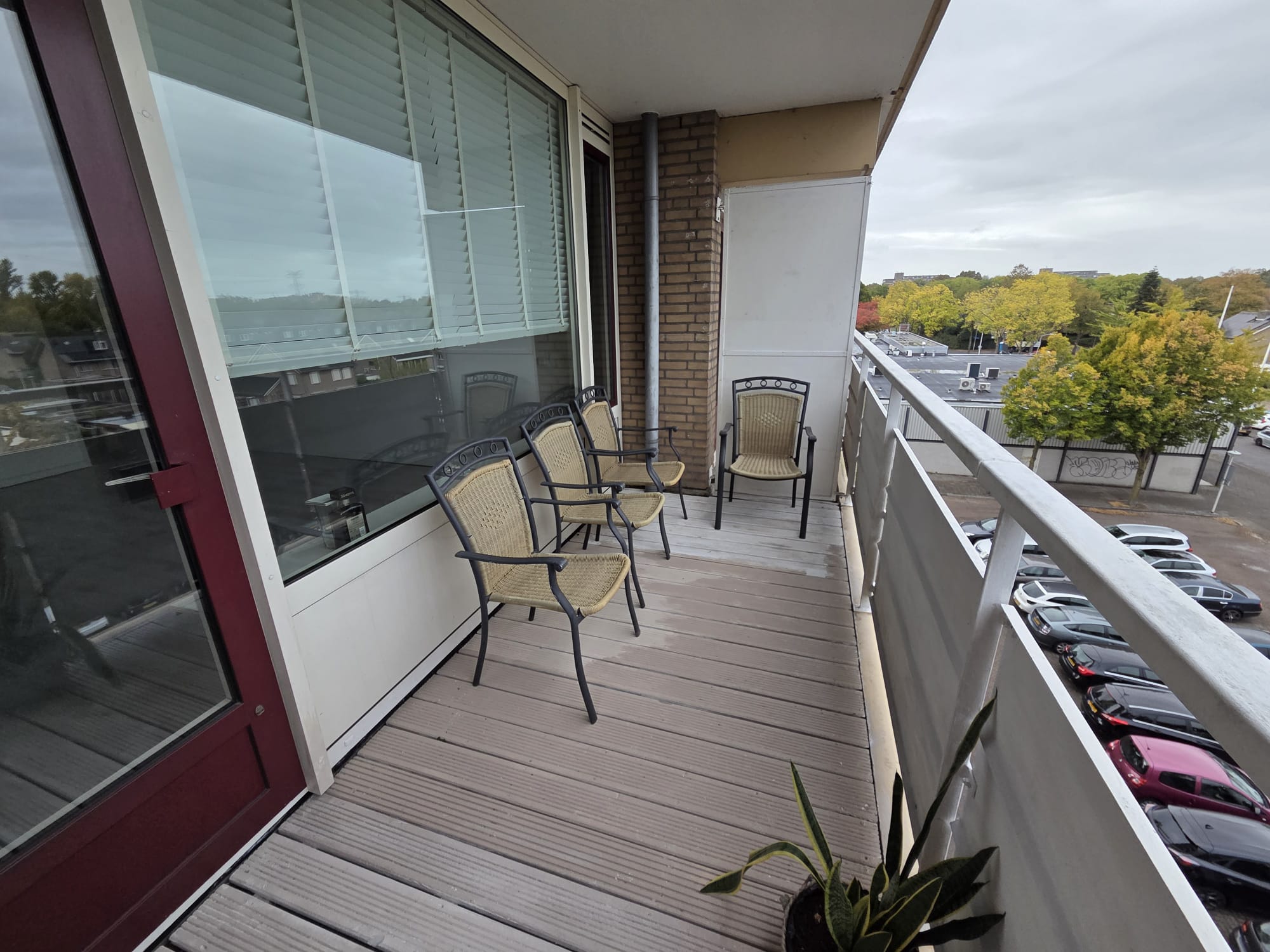Indeling: hal met 2 inbouwkasten, badkamer met douche, spiegelkast en veel opbergruimte, aparte keuken, appartement met laminaatvloer en balkon met vlonder met mooi uitzicht.