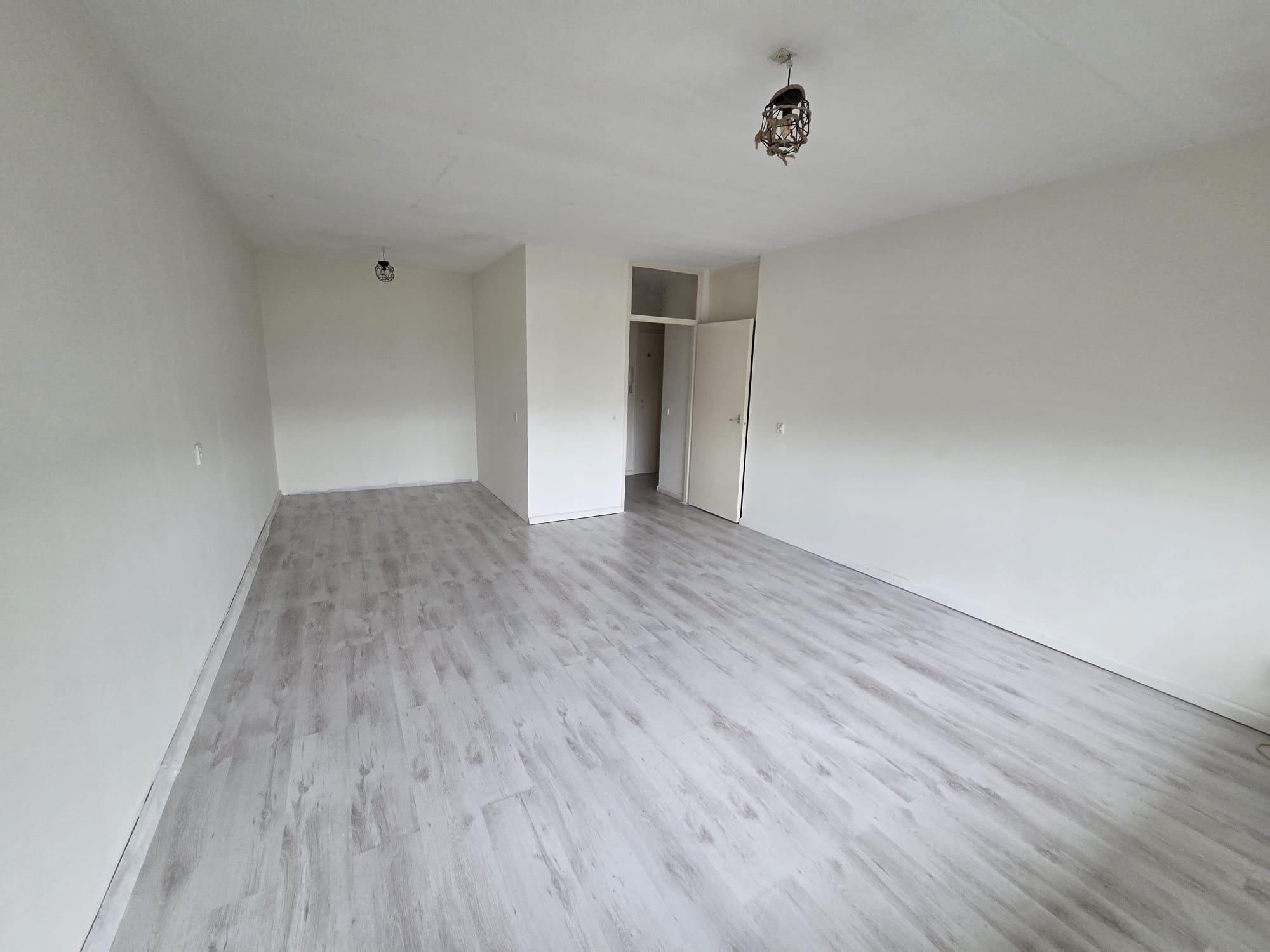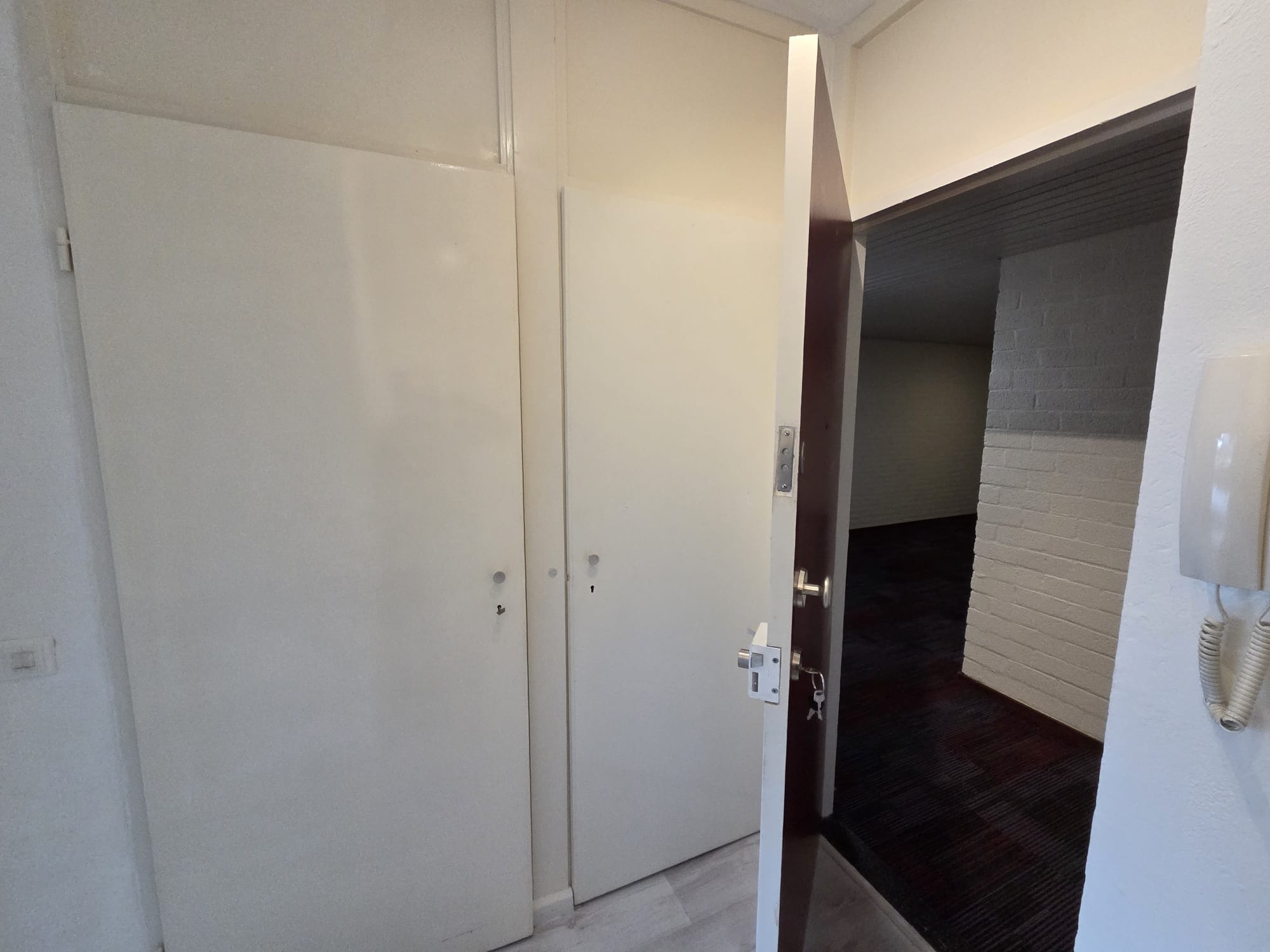 Het betreft een studio (43m2) + berging (10m2) op de 4e etage in een flat met koopappartementen.
