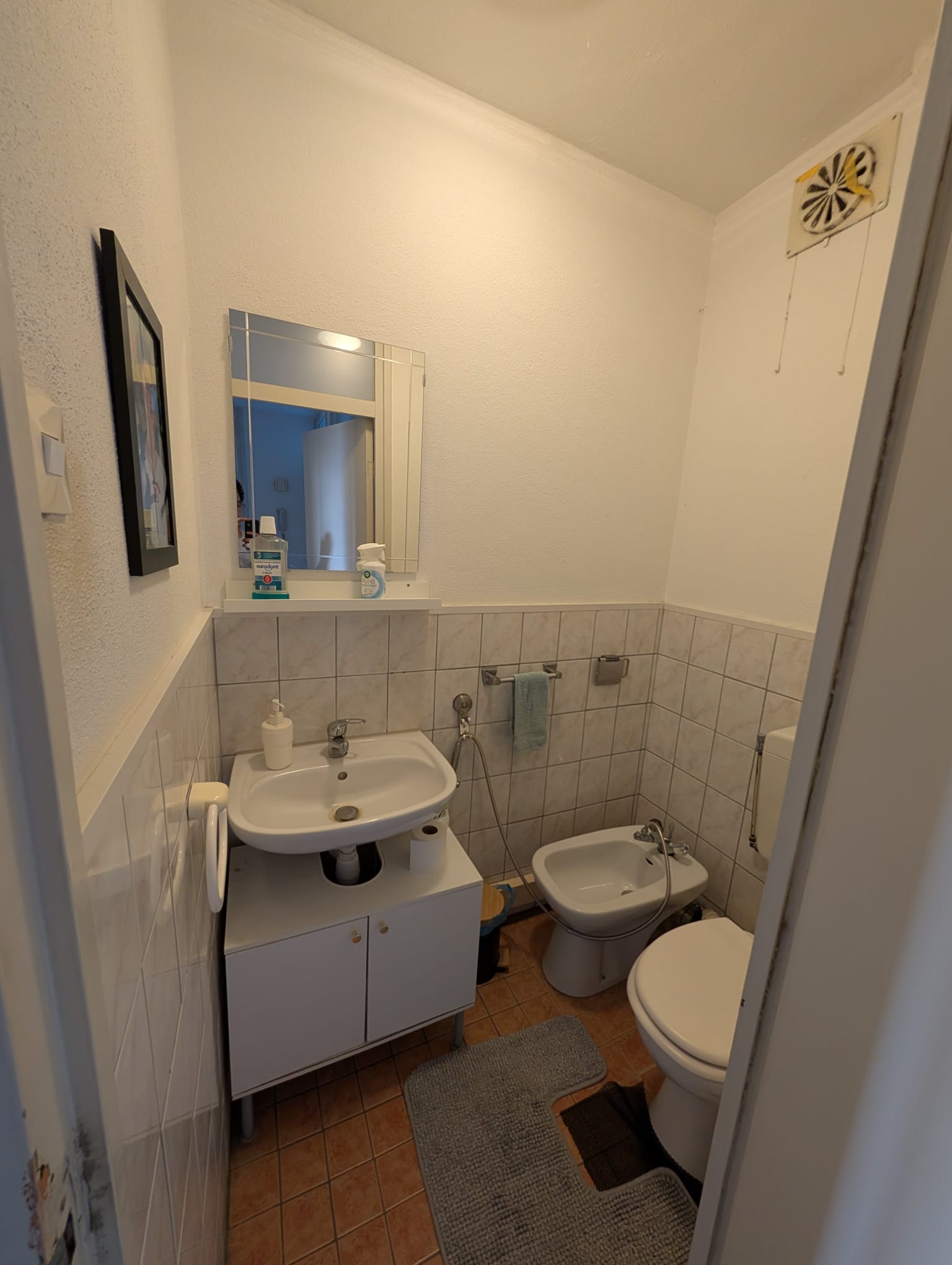 The flat has been shared by the current tenant and me, but as it has five rooms, I am renting out one extra room (in another ad). The rooms will be available after the first week of February.