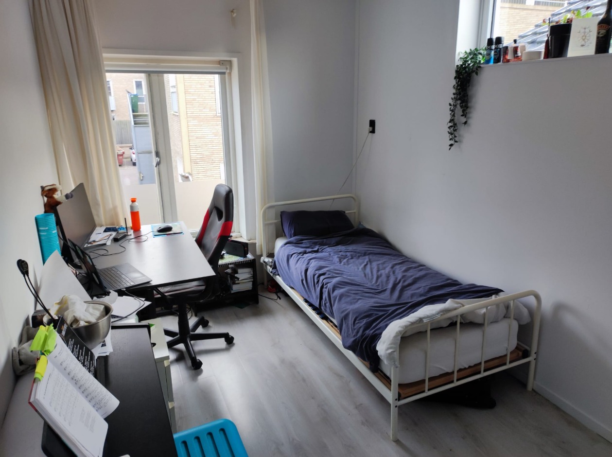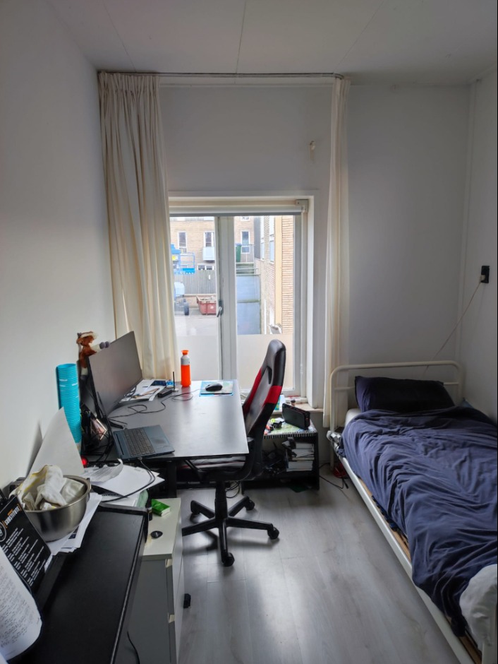 De kamer is ongeveer 12m2 en heeft een hoog plafond. De kosten zijn rond de €450 en je betaald deze altijd 2 maanden vooruit.
