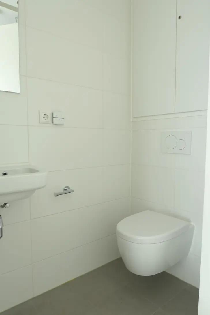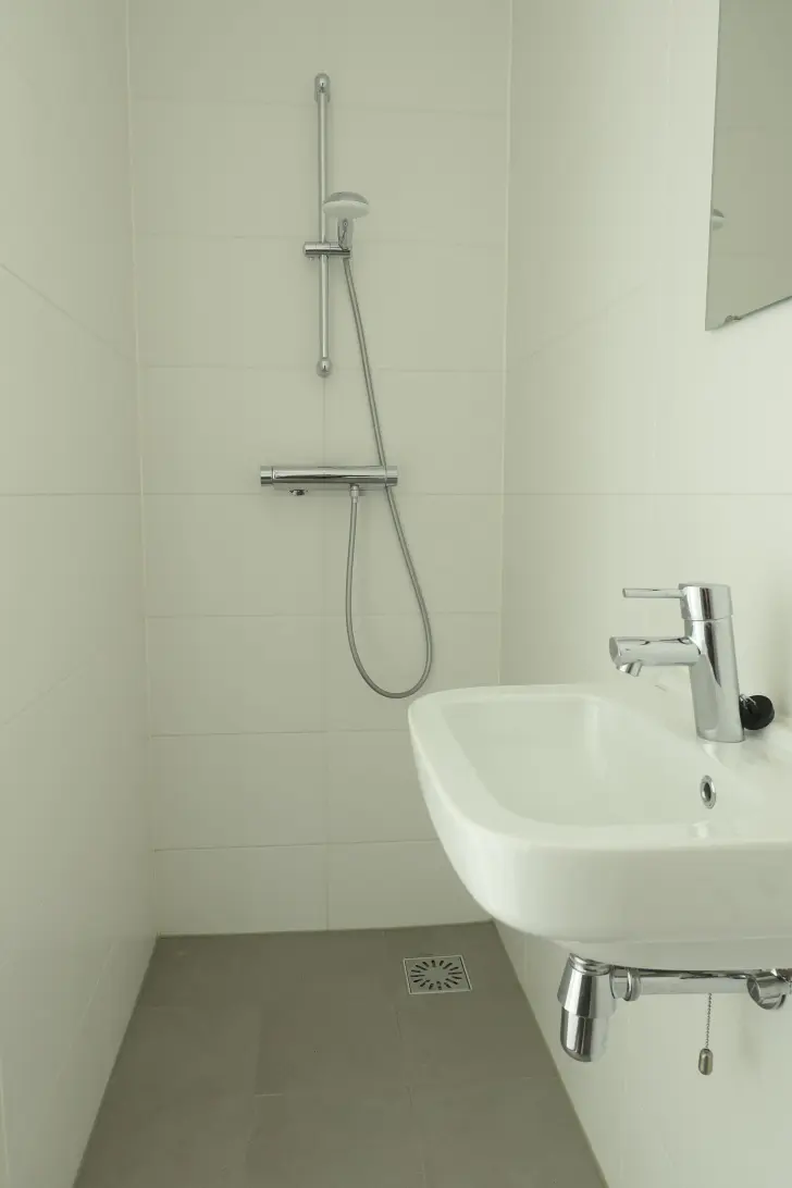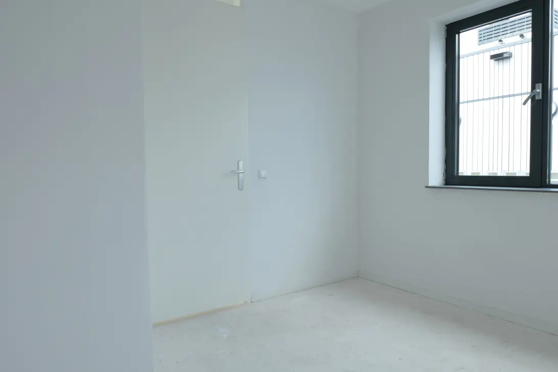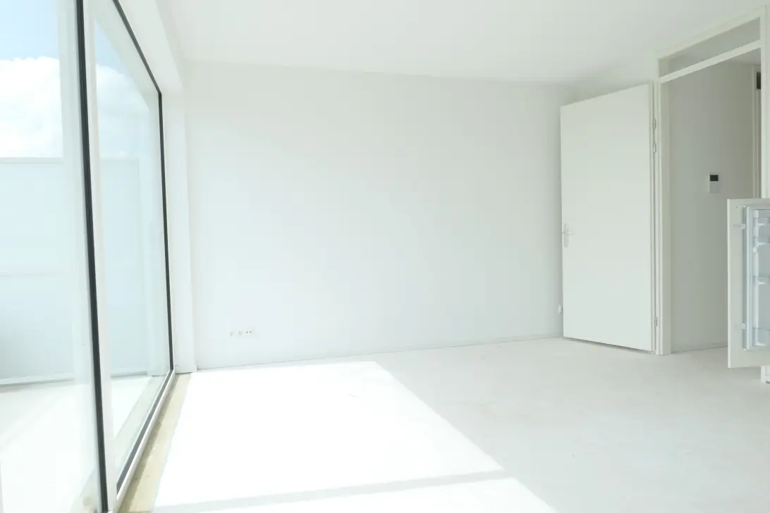 Vanuit de hal komt u in de slaapkamer, woonkamer/ keuken en de badkamer met inloopdouche en wastafel. De aansluiting voor de wasmachine en droger zijn in de badkamer te vinden.