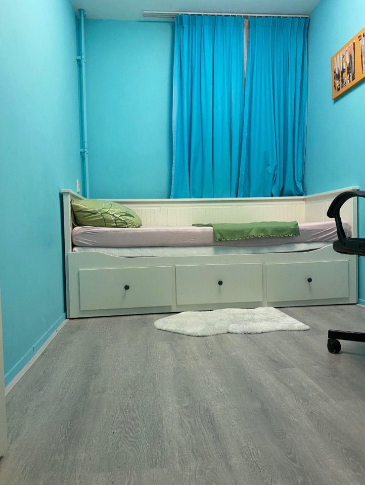 Het bed kan door simpelweg uit te trekken, tot een 2 persoonsbed worden gemaakt.