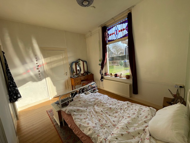 Het grote huis bestaat uit 3 zelfstandige appartementen waarvan het appartement op de begane grond beschikbaar komt. Het appartement is circa 47 m2 groot en deelt gebruik van de grote tuin met de andere appartementen.