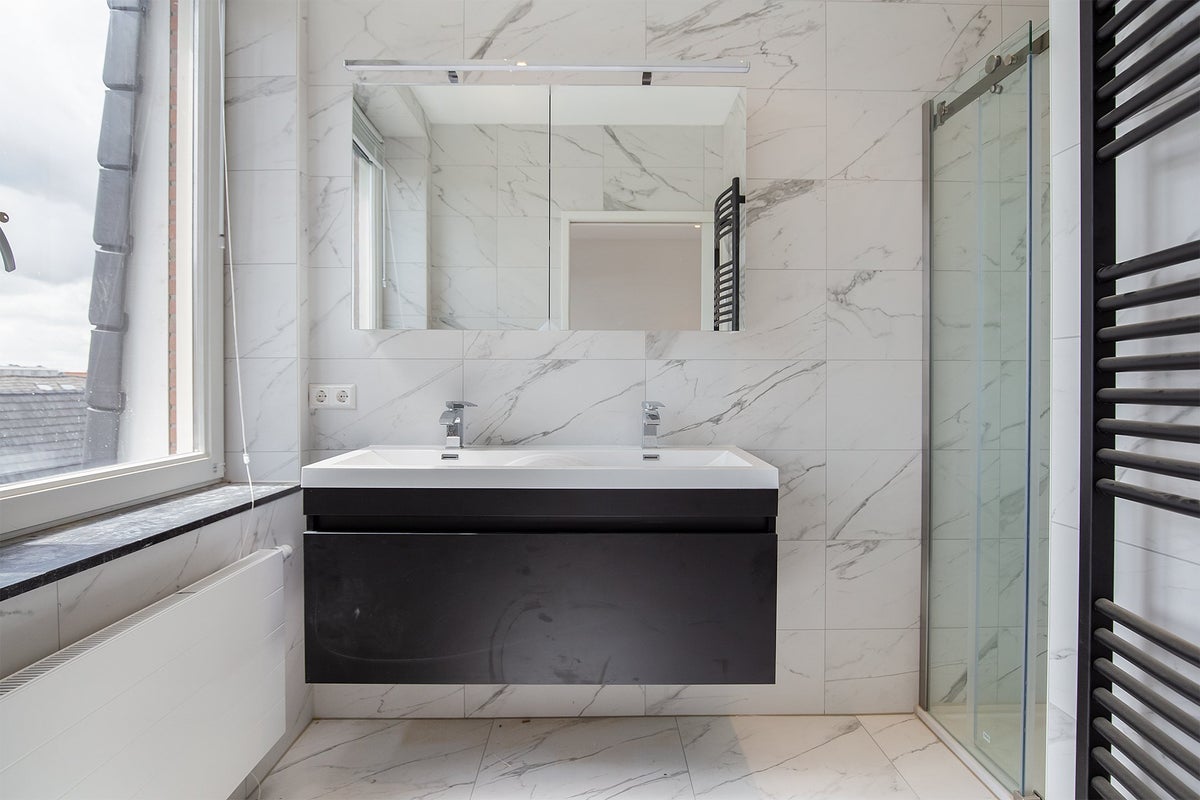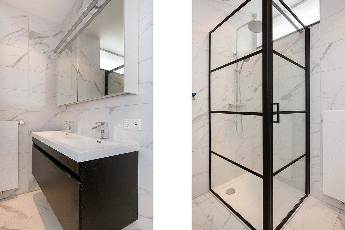 Via de karakteristieke ensuite deuren, uit een voormalig kasteel betreed u de slaapkamer. Deze bevind zich aan de achterzijde van het appartement. Vanuit de slaapkamer is er toegang tot het balkon en de badkamer. De badkamer is voorzien van dubbele wastafel, inloopdouche met regenkop en tot slot een separaat toilet.