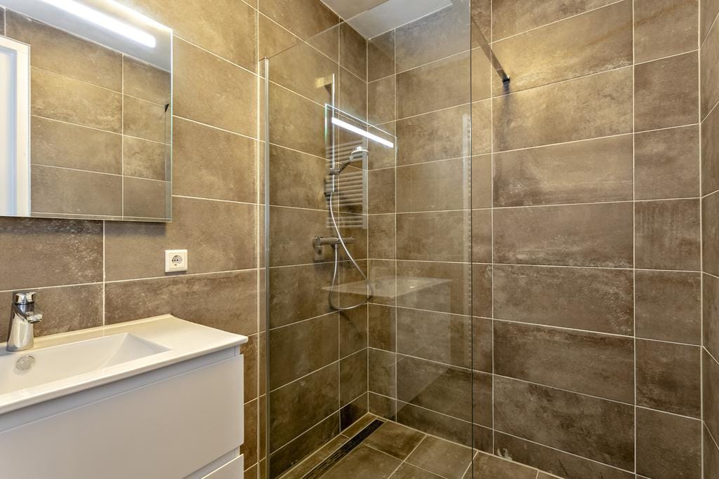 Naast de lichte woonkamer en separate slaapkamer bevindt zich in de moderne open keuken een combioven, koel/vriescombi, inductiekookplaat en is er voldoende kastruimte. De luxe badkamer is voorzien van een inloopdouche, designradiator en kast met ingebouwde wastafel.