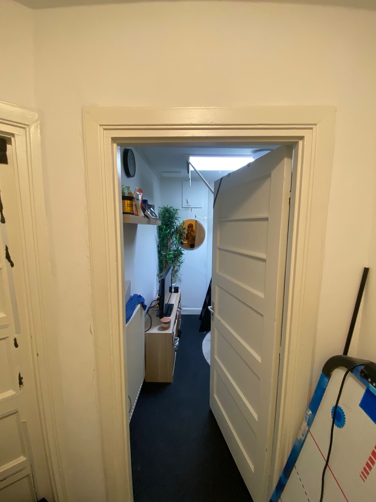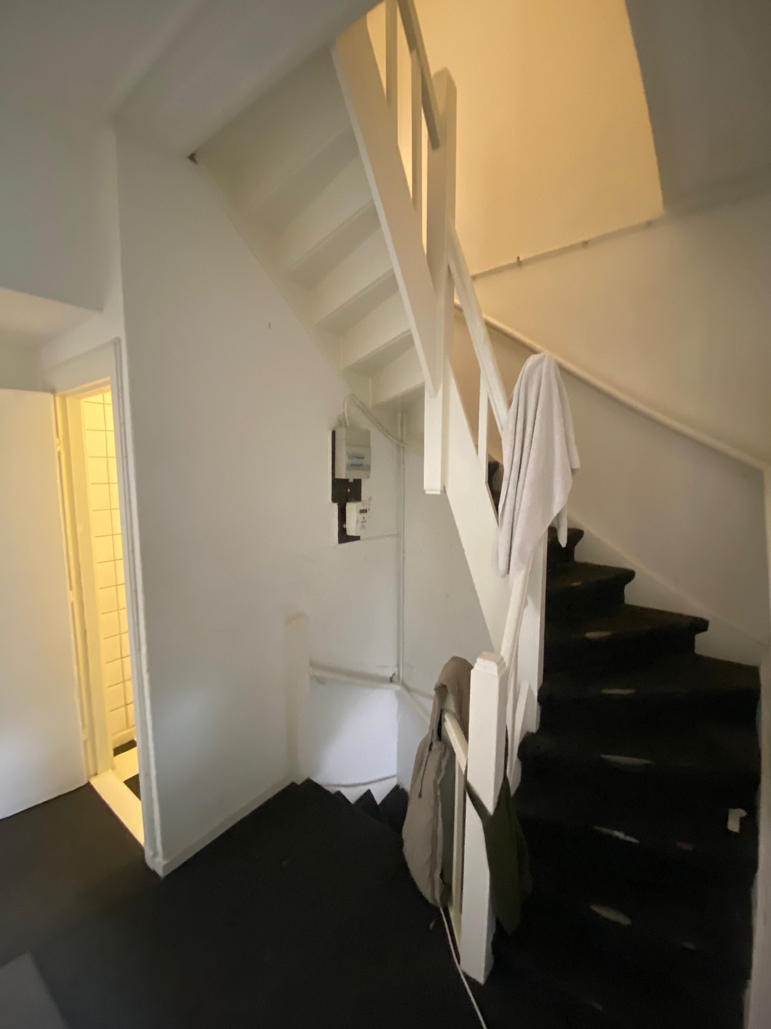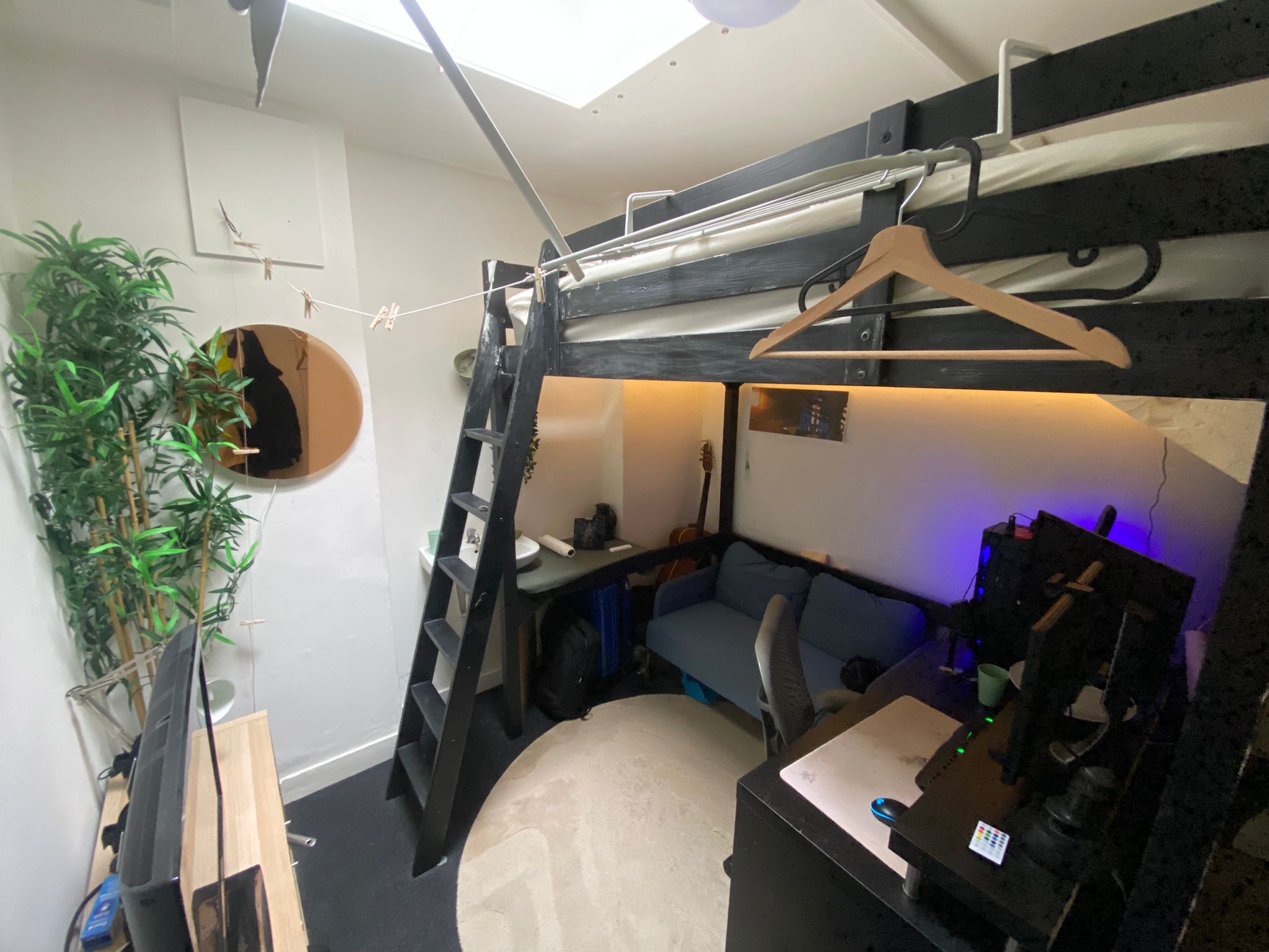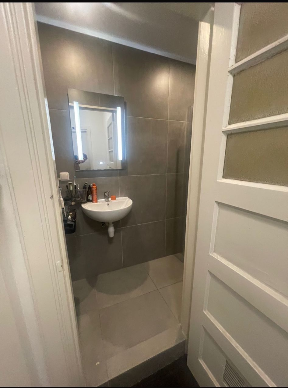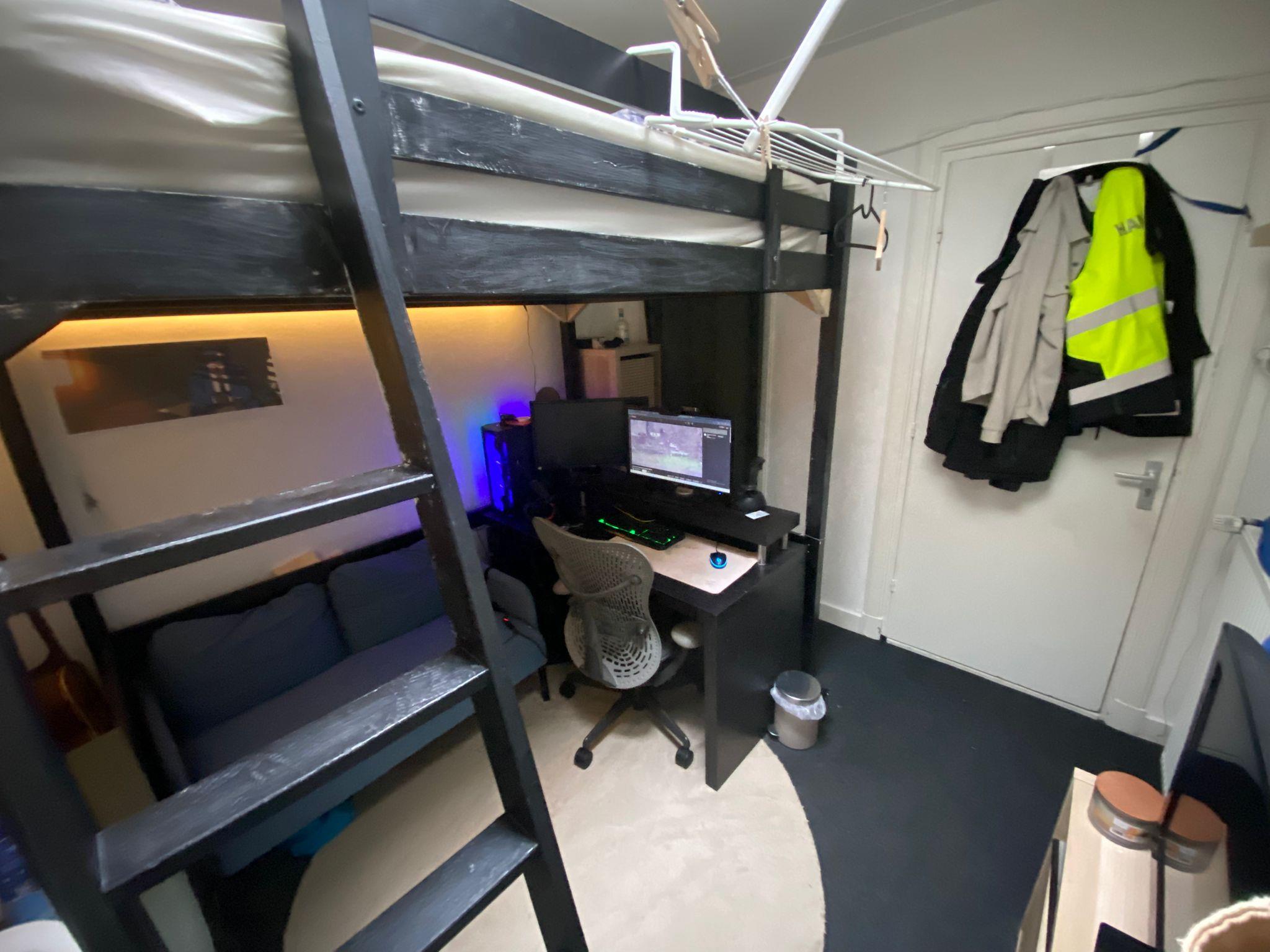 De kamer die beschikbaar komt zit op de bovenste verdieping, heeft een wasbak en wat meubels ter overname beschikbaar. De ruimte is compact, maar zoals je ziet is er wel werk verricht om er een mooie plek van te maken.
