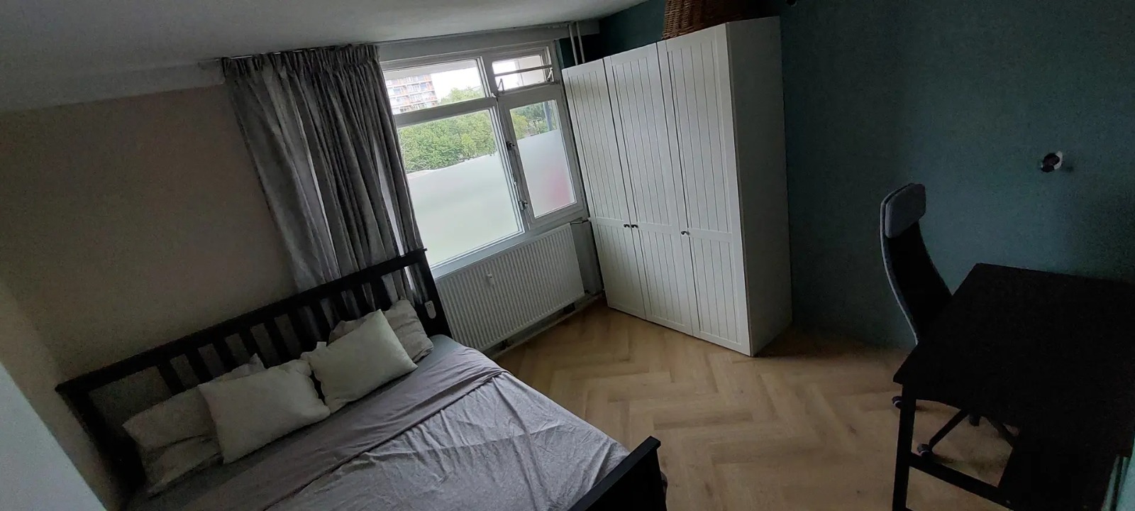 Kamer in een appartement van 85 m2. De bus richting Leiden stopt naast de deur.