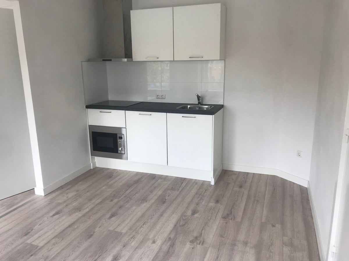 De studio heeft een eigen woonkamer met open keuken.