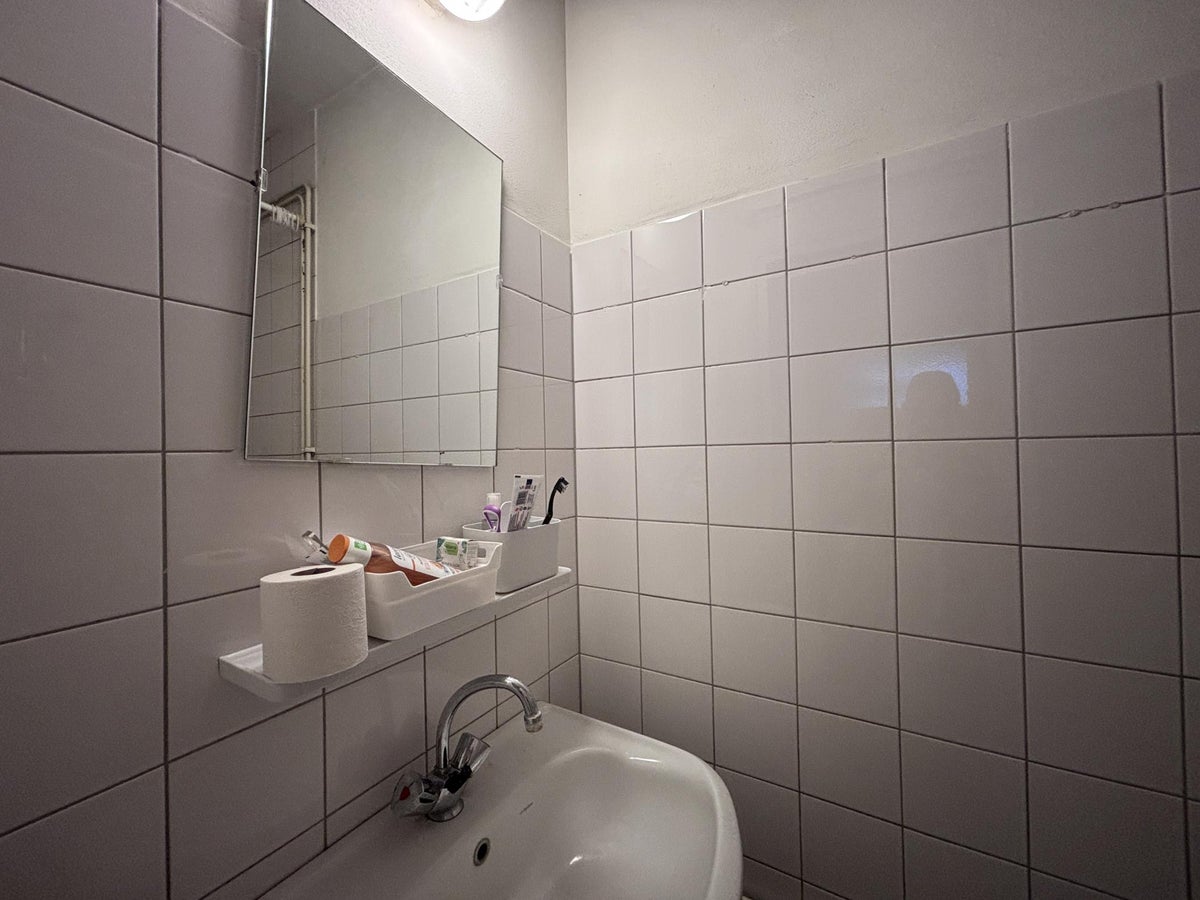 Via de beschikbare kamer is er toegang tot het balkon, dat gedeeld wordt met één andere huisgenoot. Via de hal is er toegang tot de badkamer. De badkamer is voorzien van een wastafel en een douche.