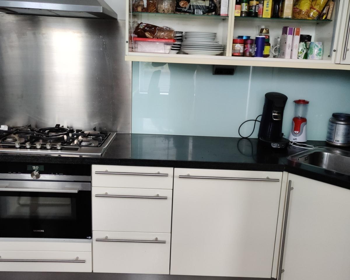 Moderne keuken en badkamer worden gedeeld met eigenaar..