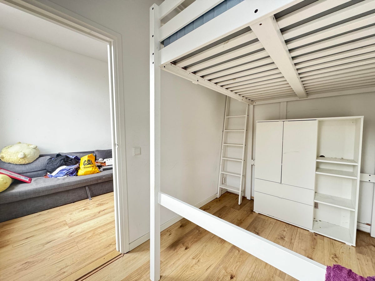 Aan de achterzijde van het appartement vind je de tweede slaapkamer, ook voorzien van een groot raam voor voldoende daglicht.