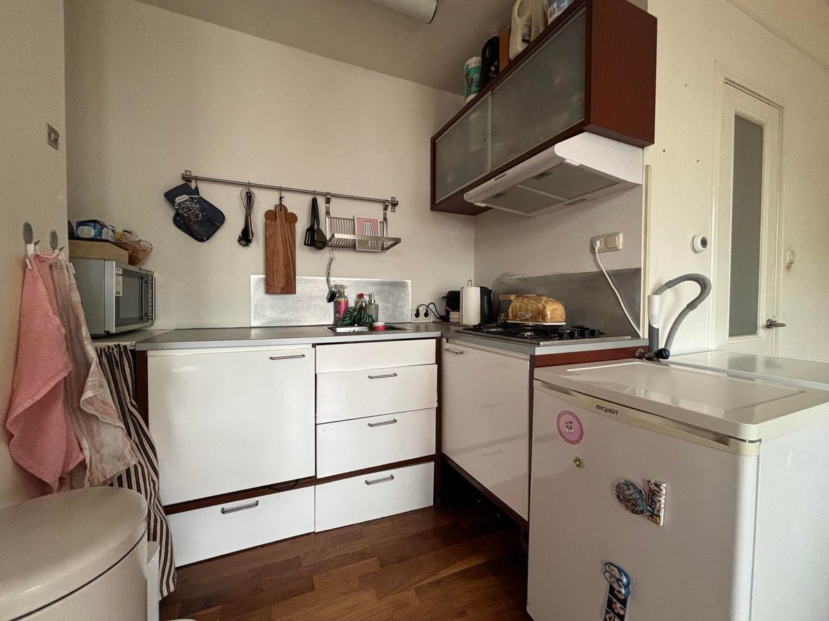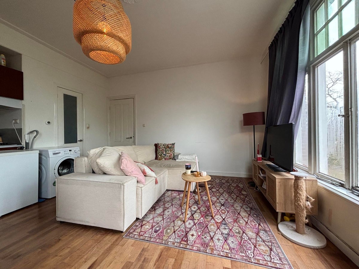 32m²) te huur. Het is gesitueerd op de 2e etage aan de voorzijde van het pand. Het beschikt over een hal/entree, woonkamer (ca. 25m²) met half open keuken, aparte badkamer met douche & wastafel, separaat toilet en aparte slaapkamer (ca.