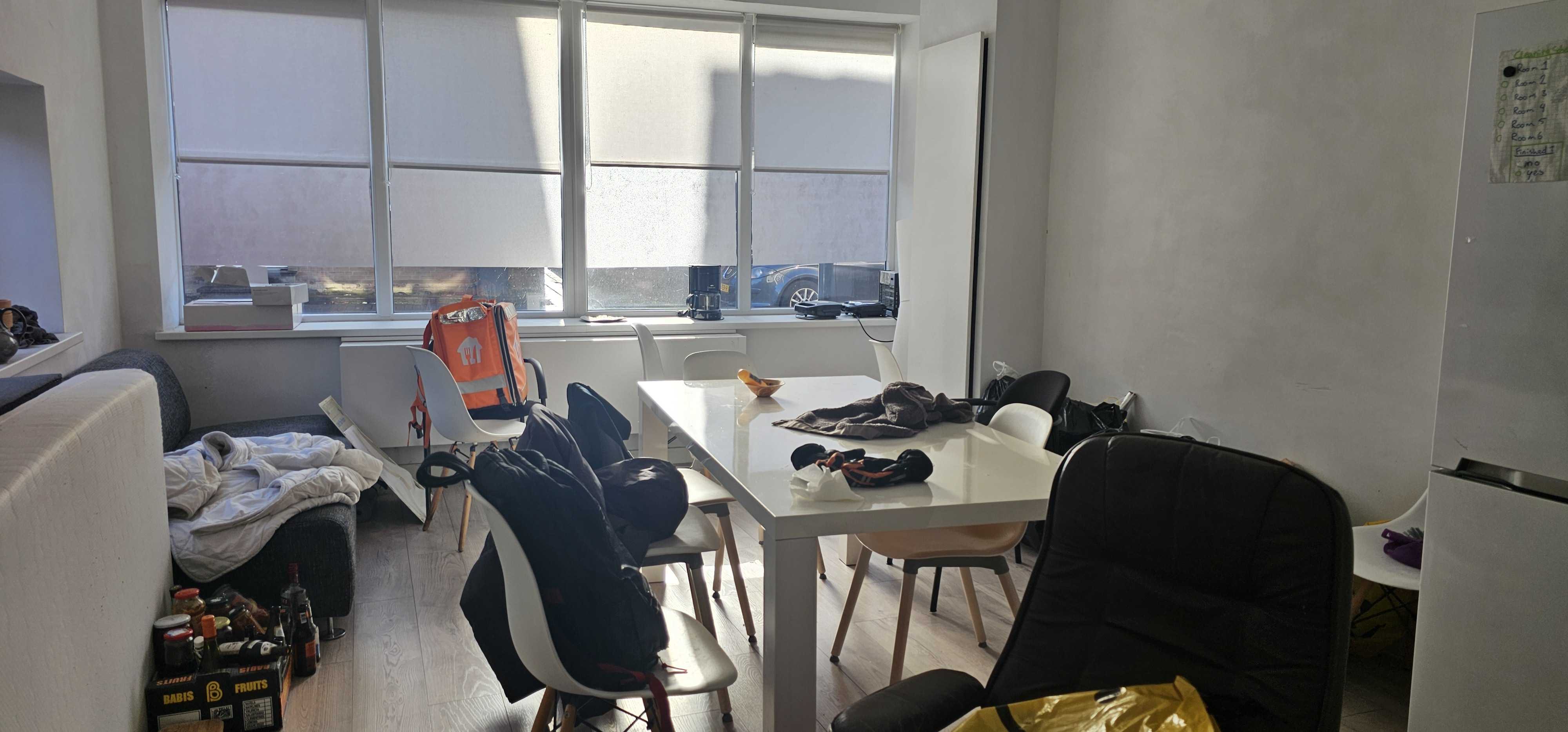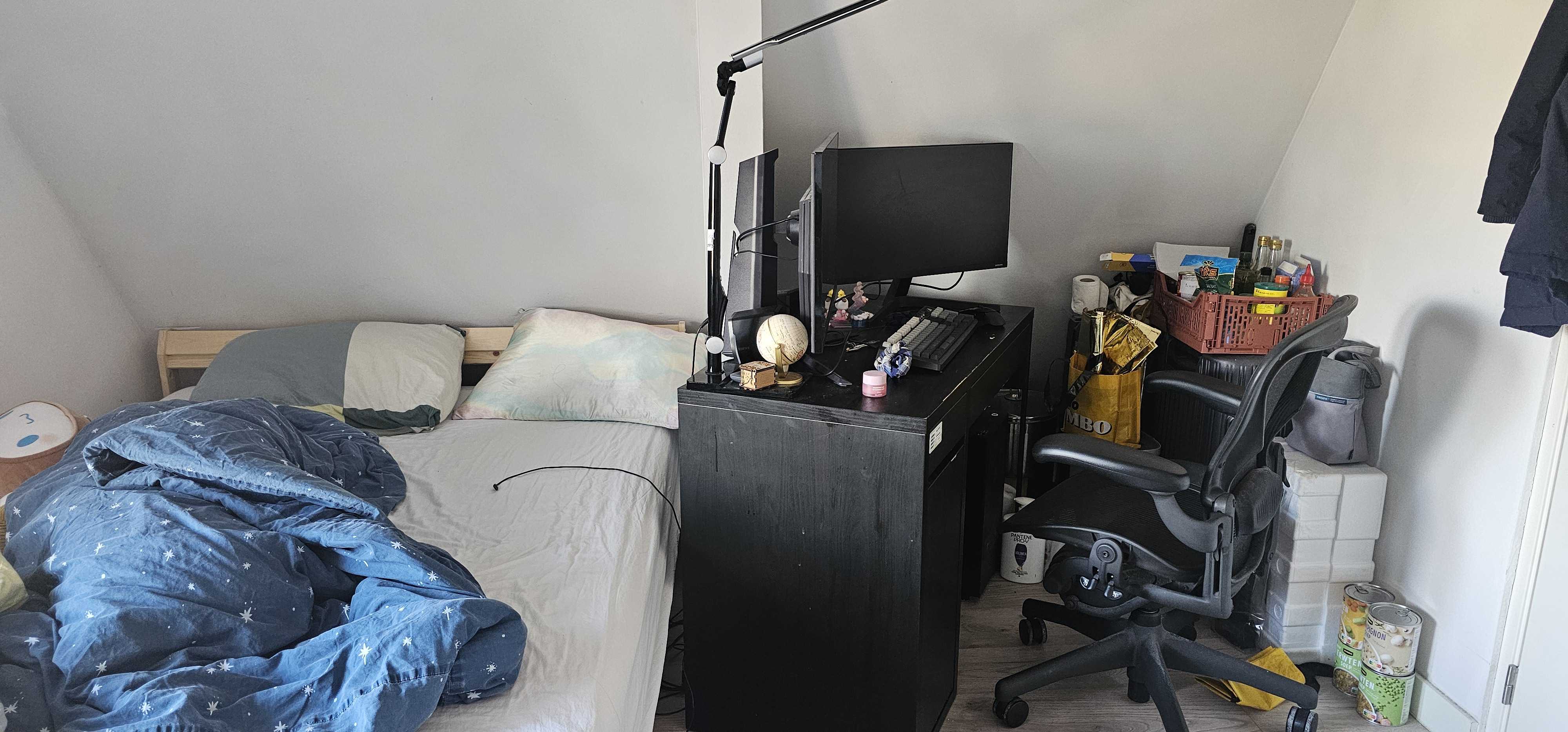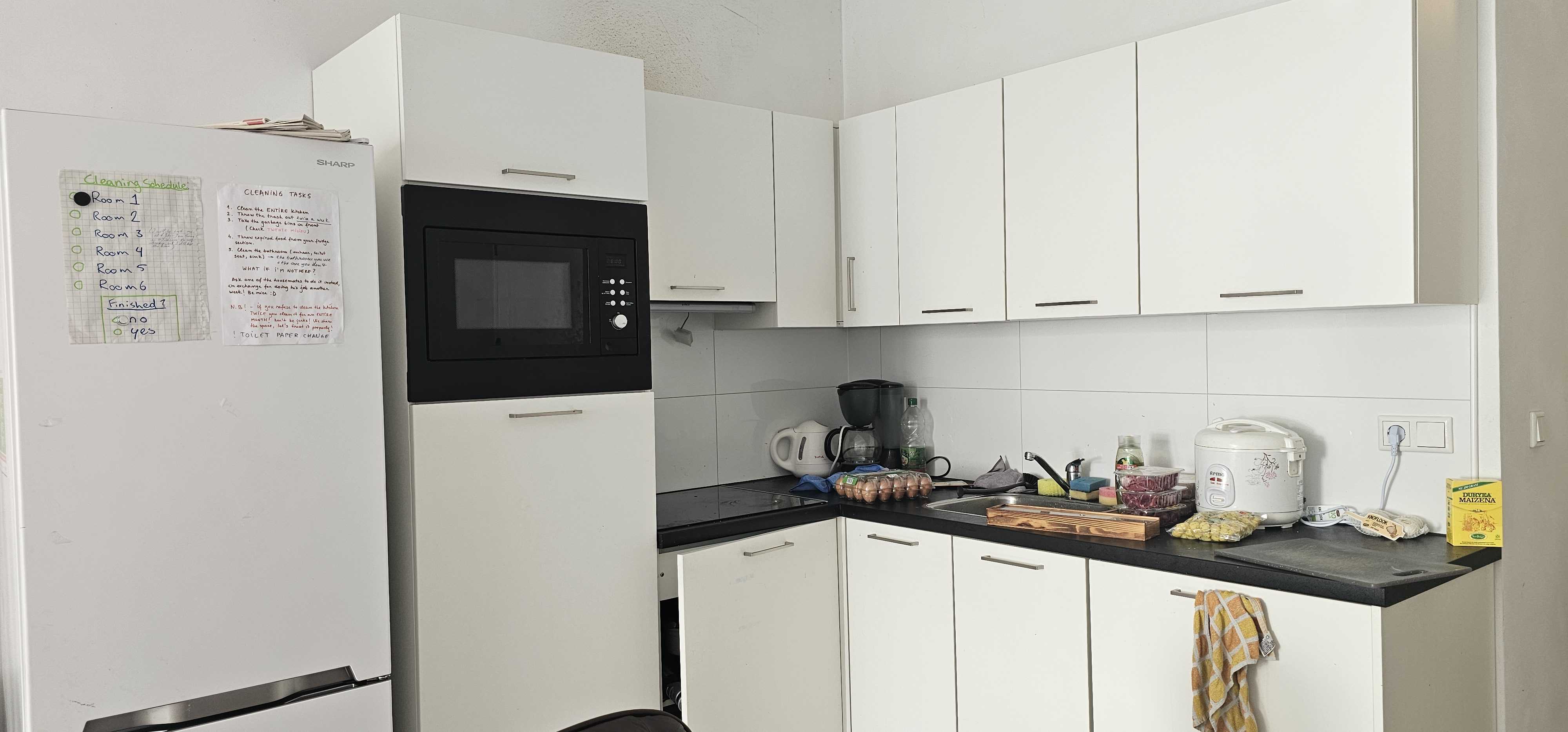 The room come furnished with a table, a chair, a bed and a closet. The bathroom, kitchen and shower are shared among 4 others people. You will have your own cupboard space. There are 2 fridges to store a lot of food.