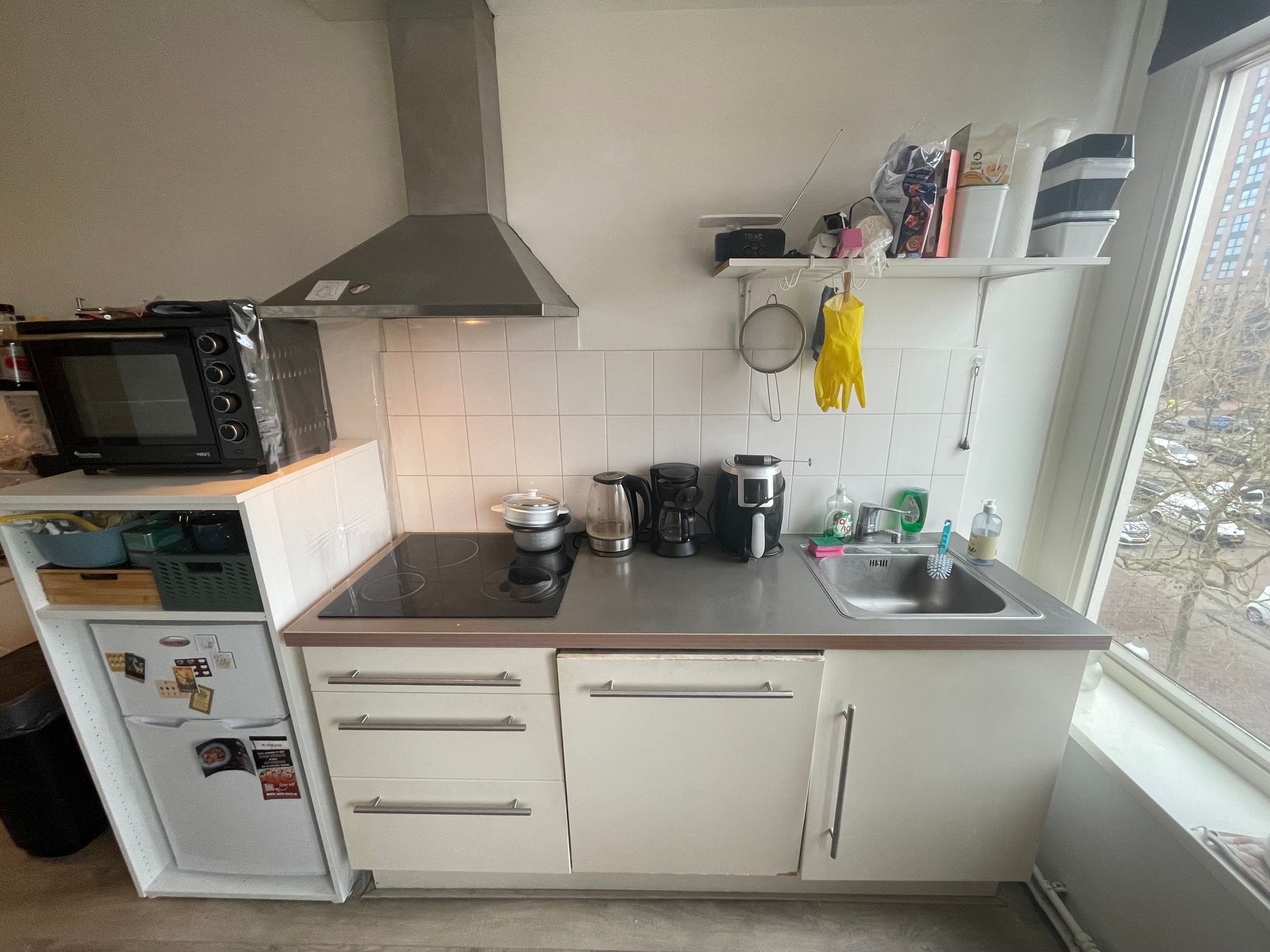 inductie kookplaat met rvs afzuigschouw en ingebouwd vaatwasser. Badkamer met douche, toilet, wastafel en witgoedaansluitingen. Let op: in deze studio mogen geen huisdieren worden gehouden.